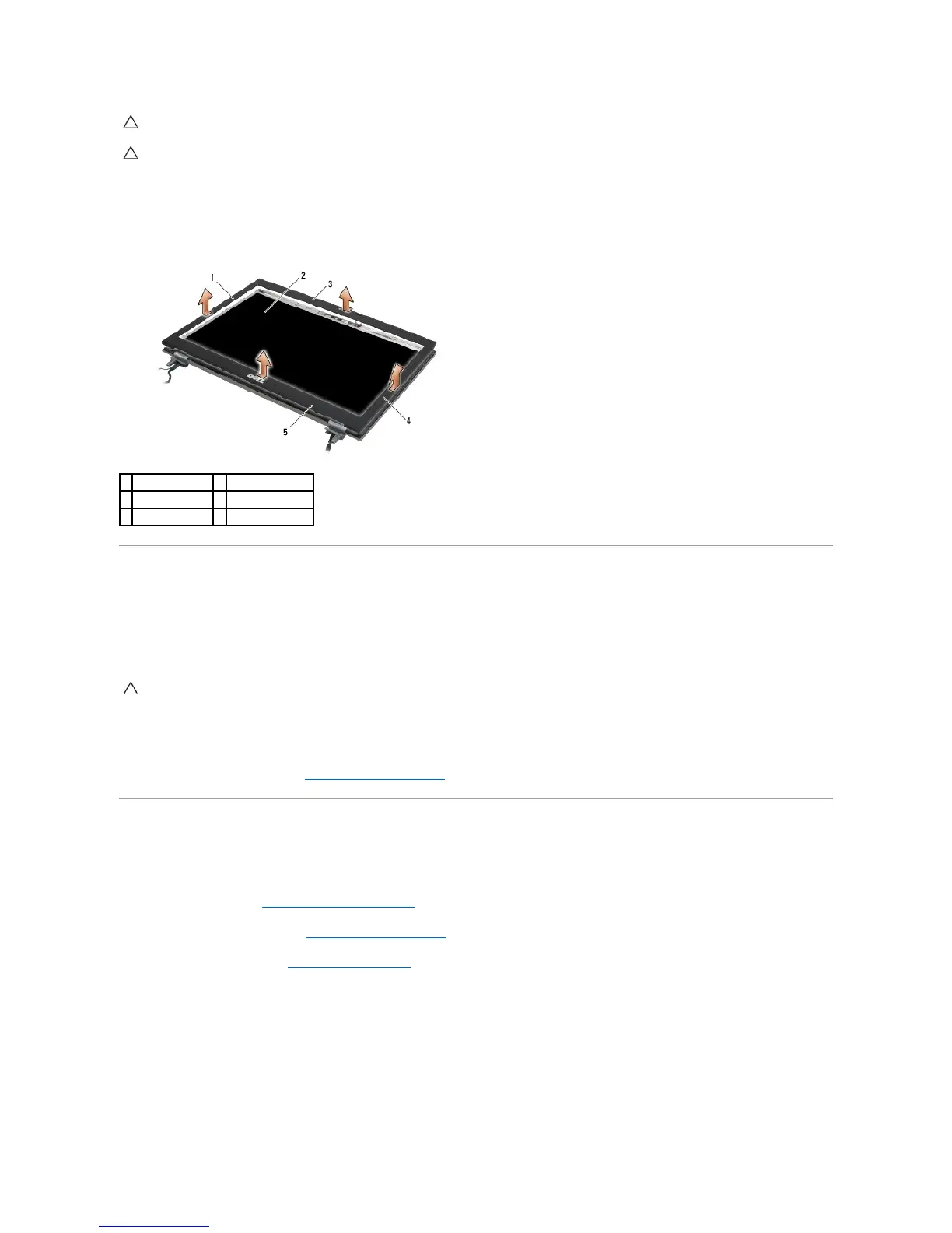 CAUTION: To release the snaps on the left and right sides of the bezel, push the bezel sides away or out from the display while lifting the bezel.