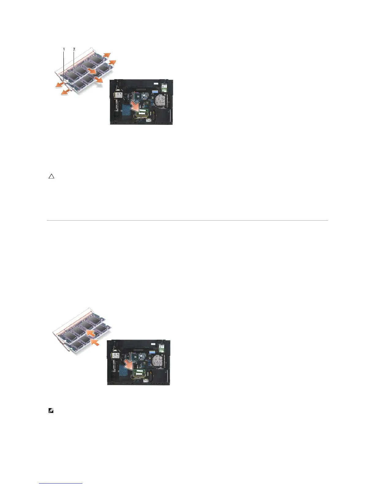 1. To remove the DIMM A module, spread away the retaining clips from the side edges of the memory module and lift the free edge of the module so that it