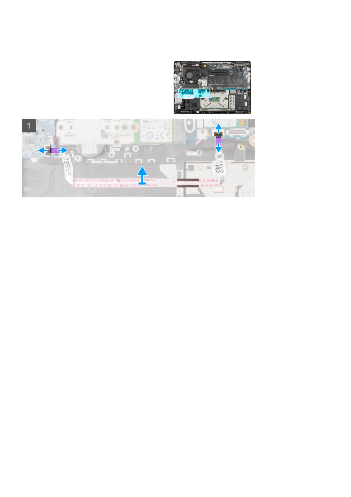 The following image indicates the location of the USB cable and provides a visual representation of the removal procedure.