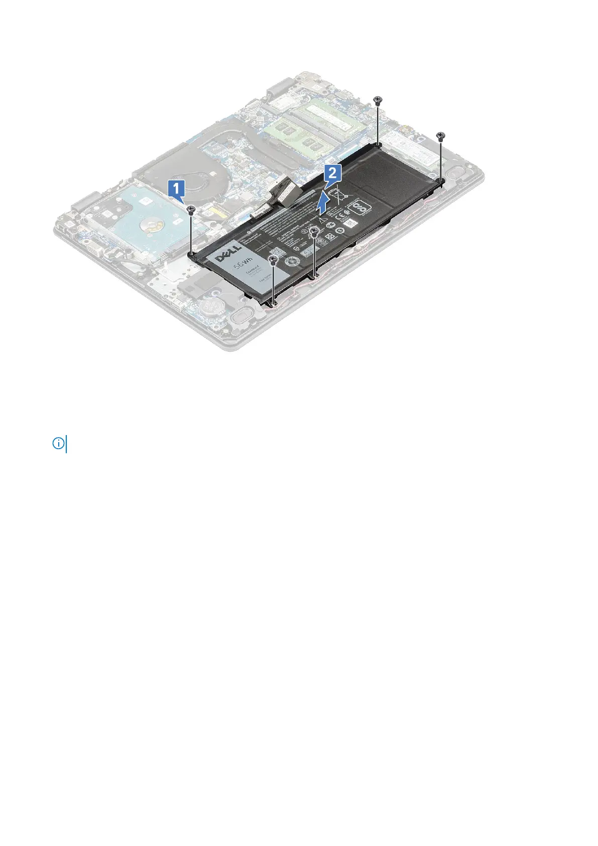 2. Replace the 5 M2x3 screws to secure the battery to the computer.