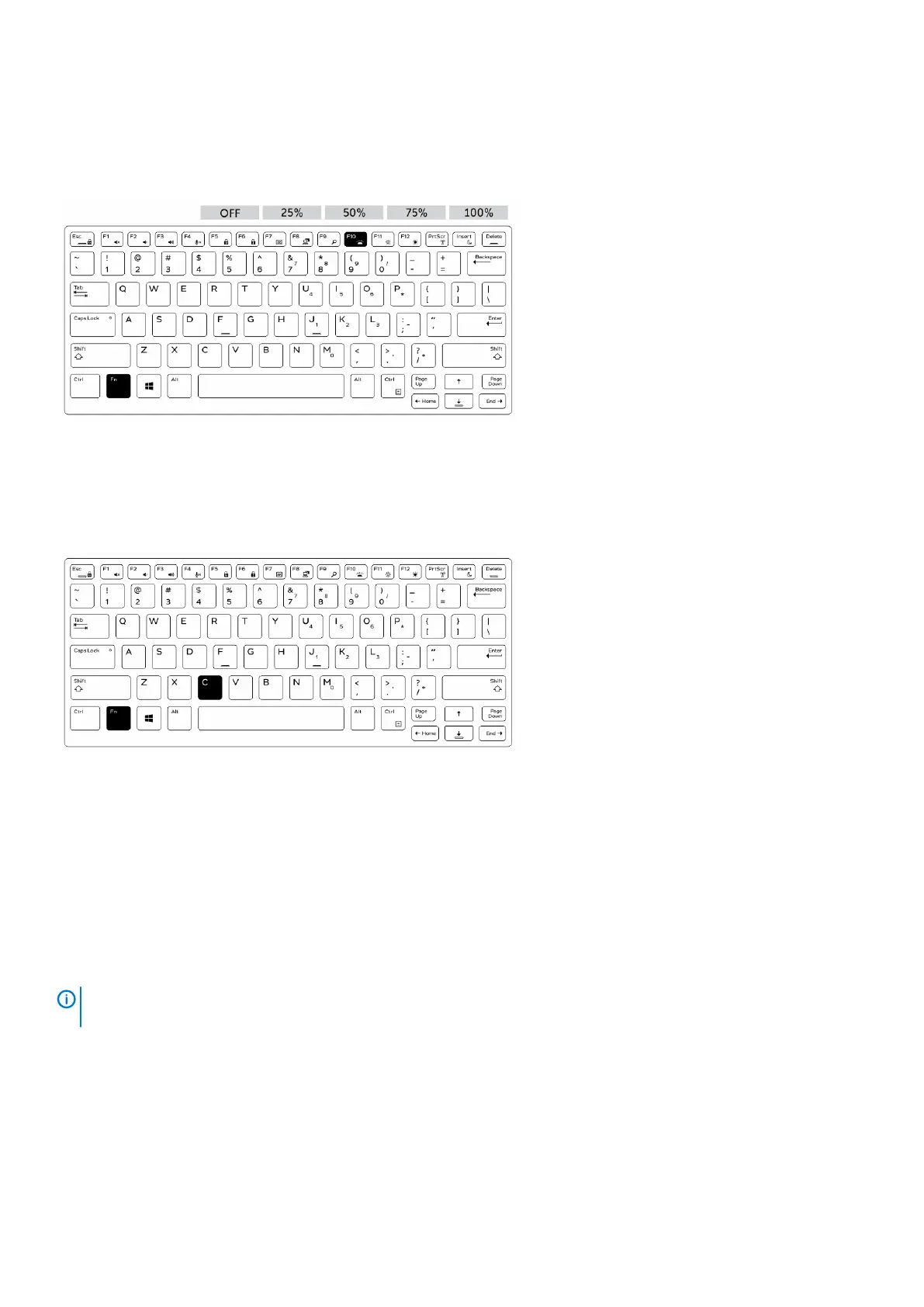 3. Repeated pressing of the key combinations cycles the brightness settings through 25 percent, 50 percent, 75 percent and
