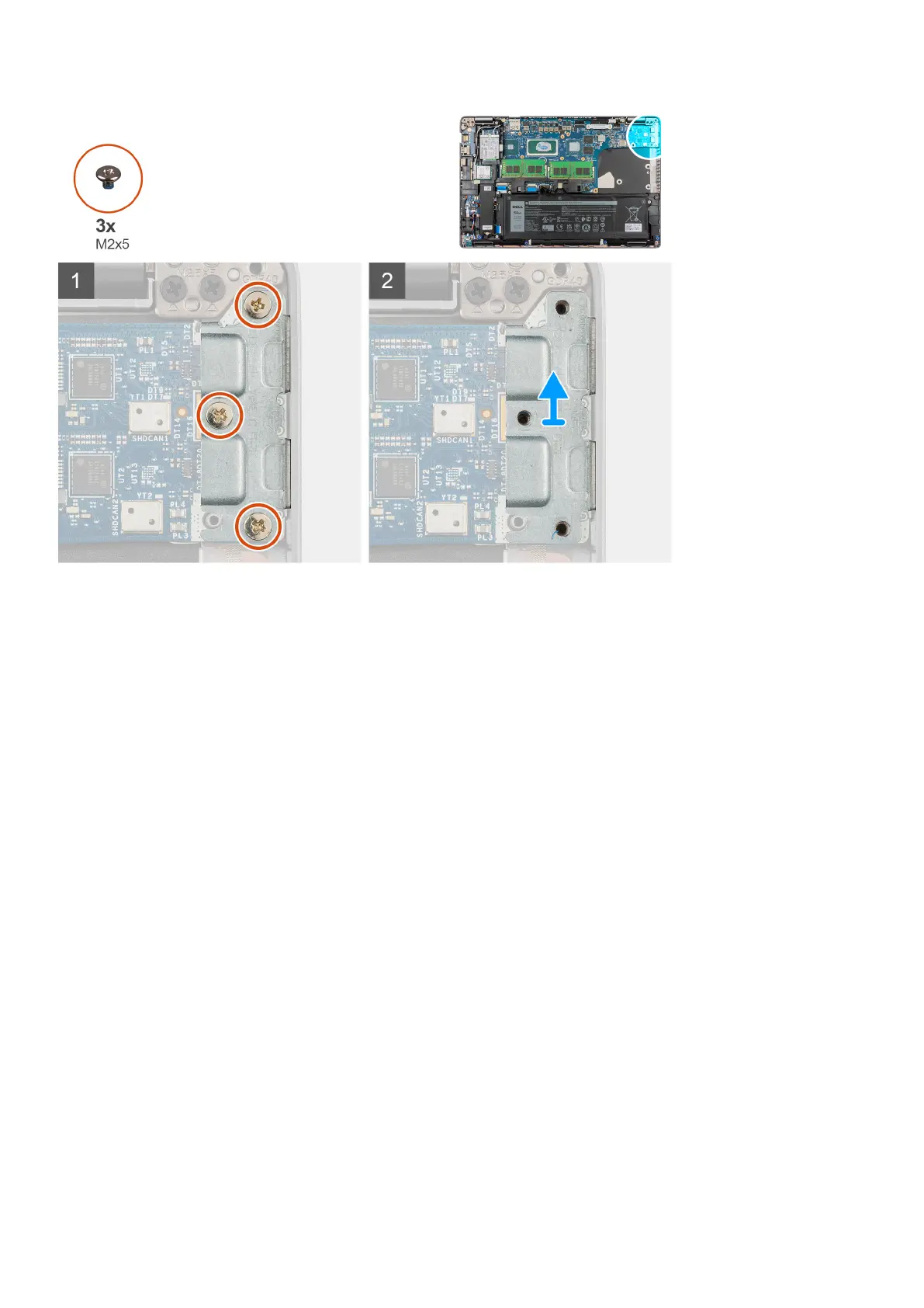1. Remove the three (M2x5) screws that secure the USB type-C bracket to the system board.