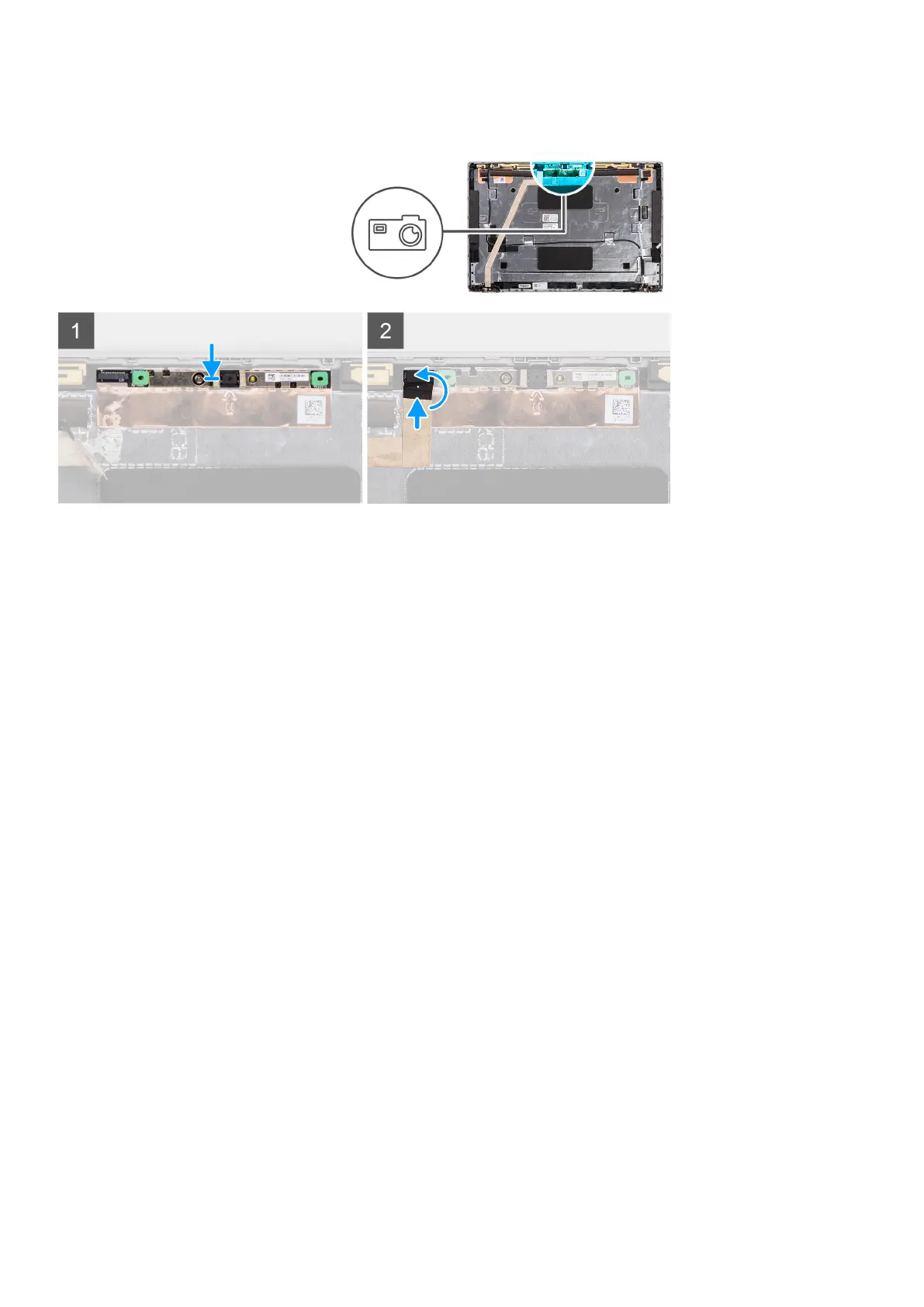 1. Align and place the camera module into the slot on the display back cover.