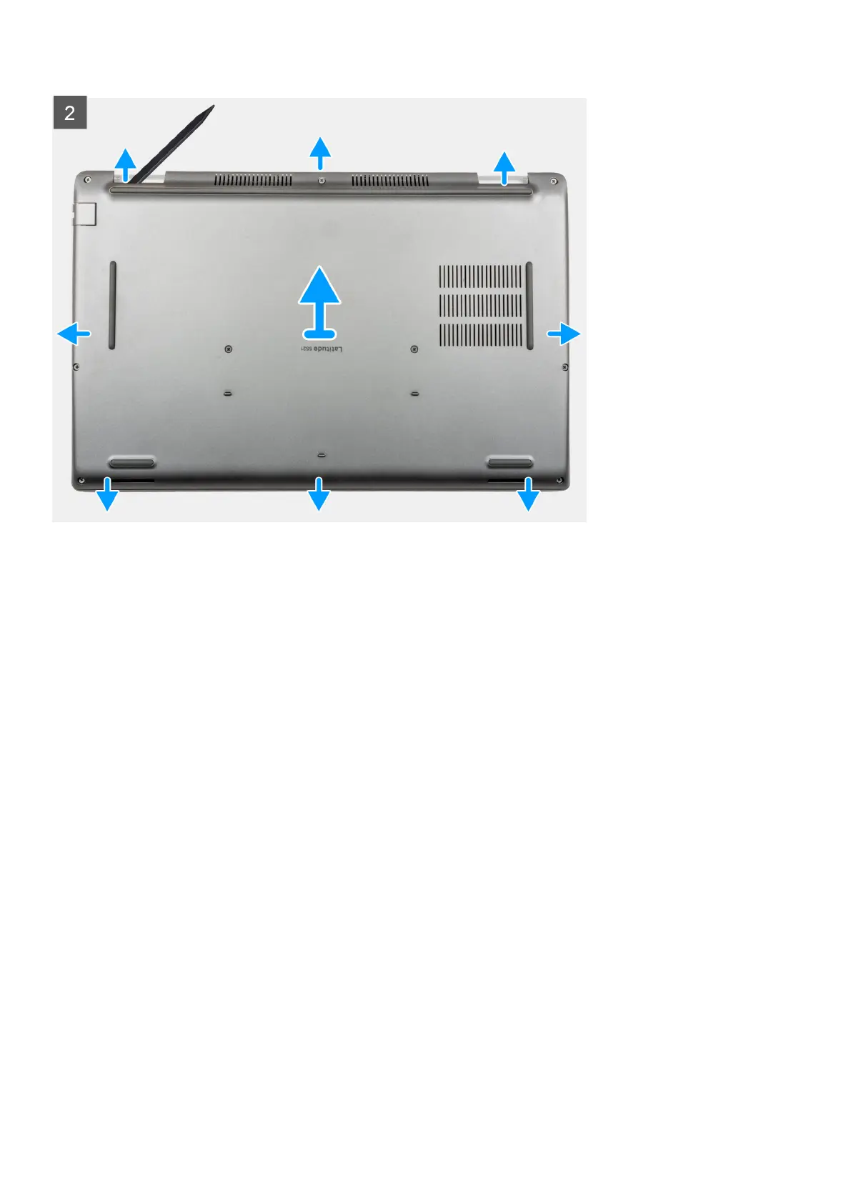 2. Using the flat-end of plastic scribe, pry the base cover from the U-shaped indents at the top edge of the base cover and