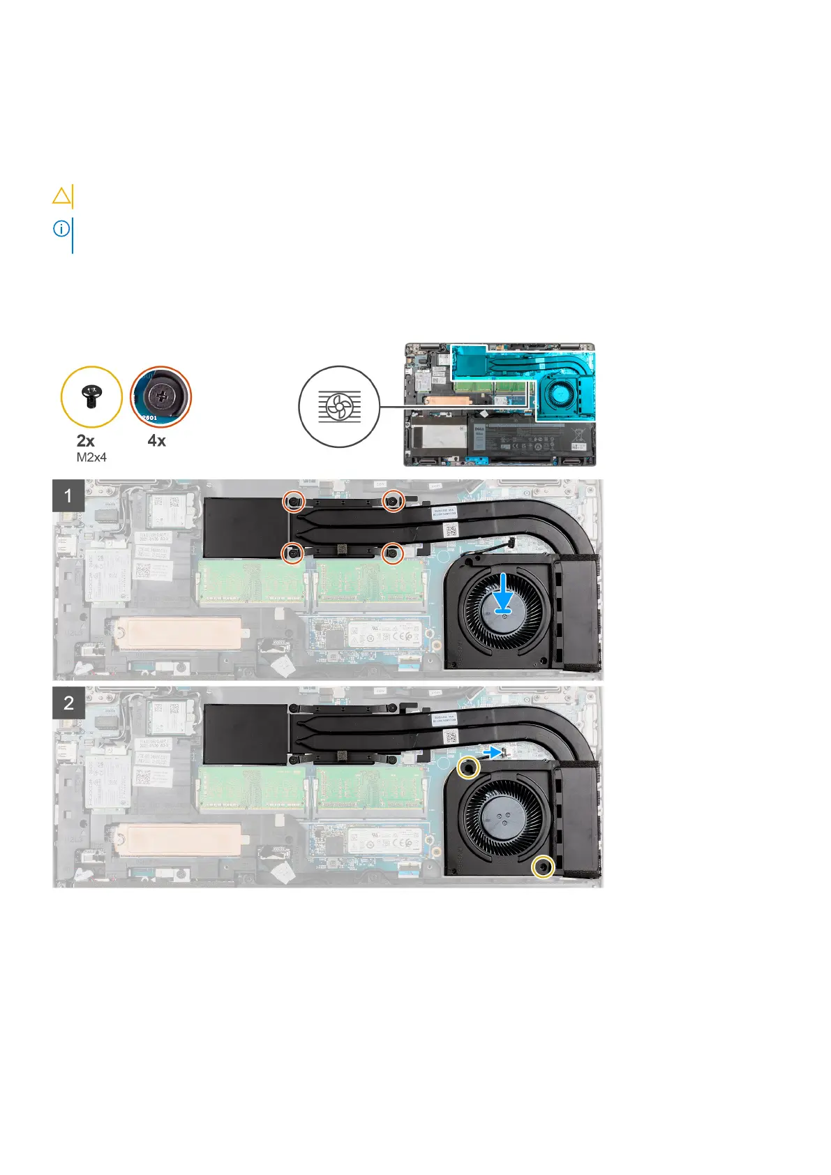 4. Replace the two (M2x4) screws that secure the system fan to the frame.