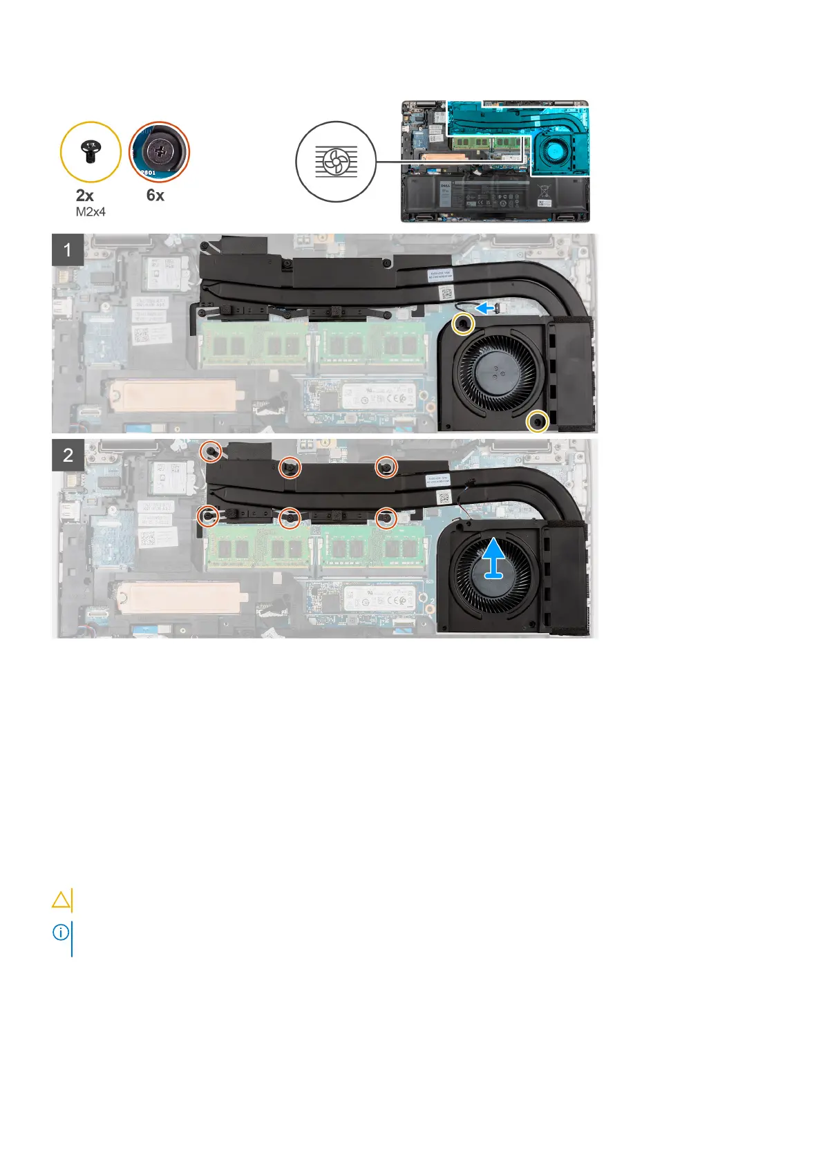 2. In reverse sequential order (as indicated on the heat sink), loosen the six (M2x3) screws that secure the heat sink and fan
