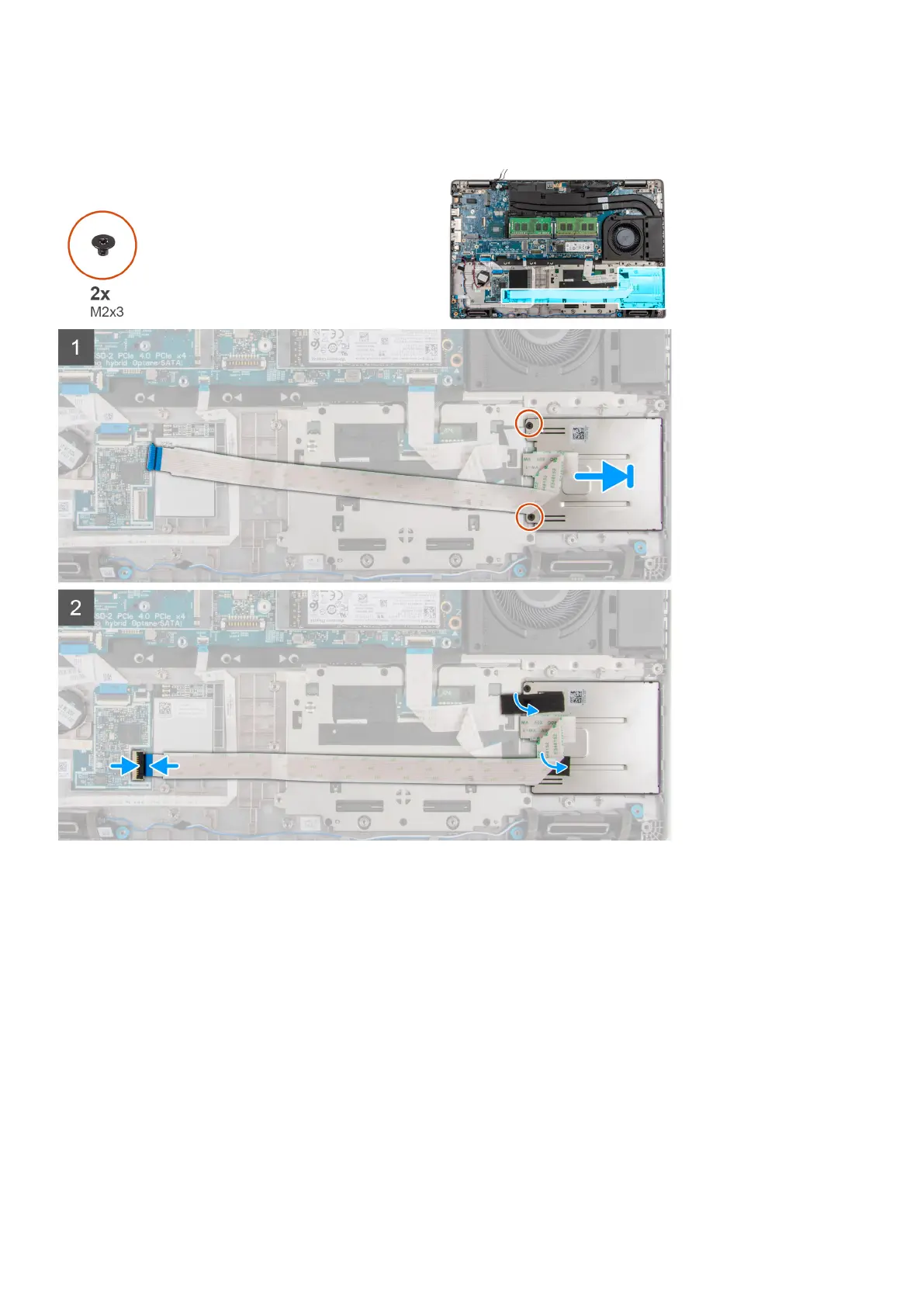 2. Replace the three screws (M2x3) that secure the smart card reader to the palm-rest assembly.