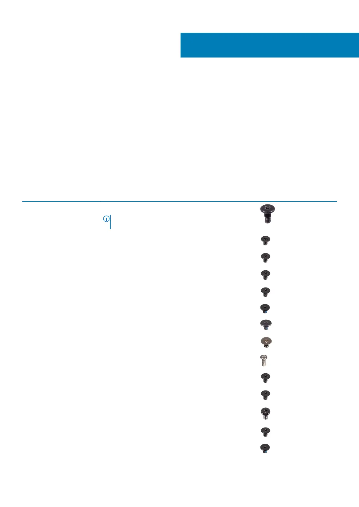 The following table shows the screw list and the images for Dell Latitude 9410, for different components and locations.