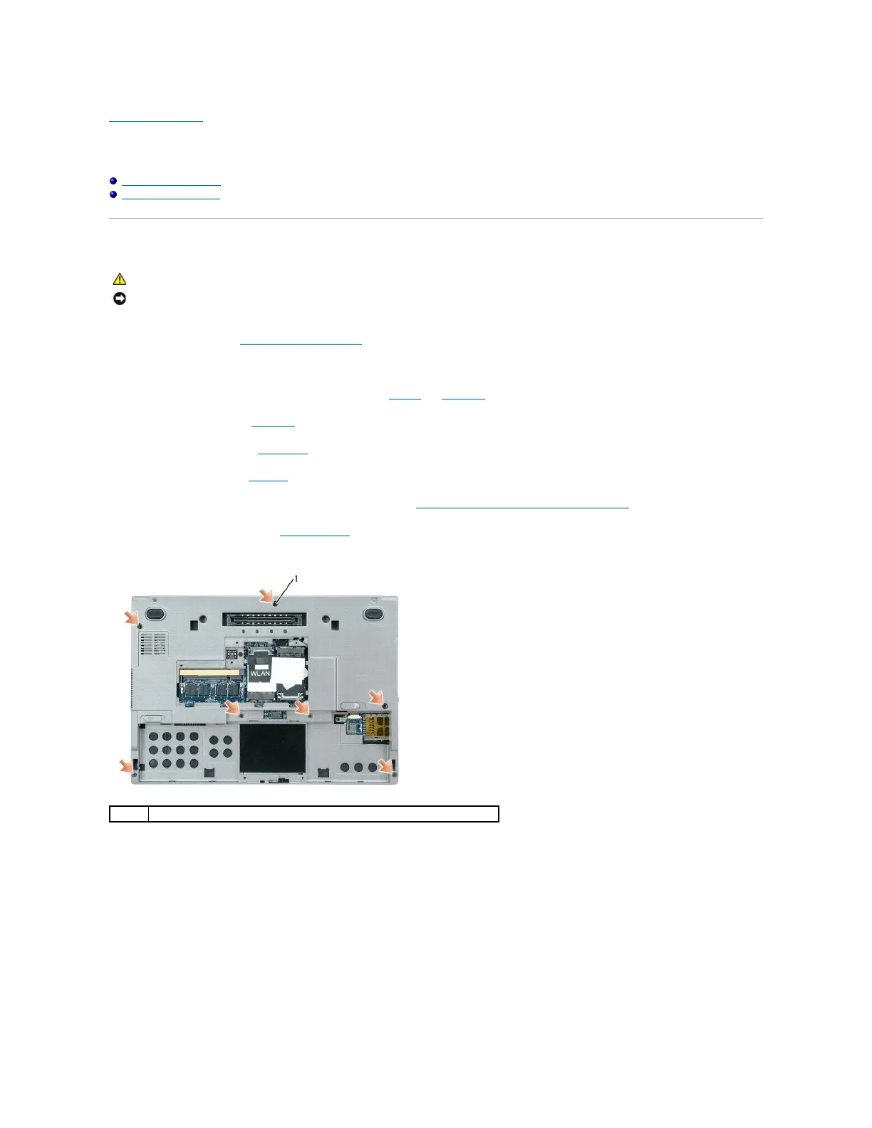 3. Remove any installed memory modules or Mini PCI cards (see Memory and Mini-Cards).