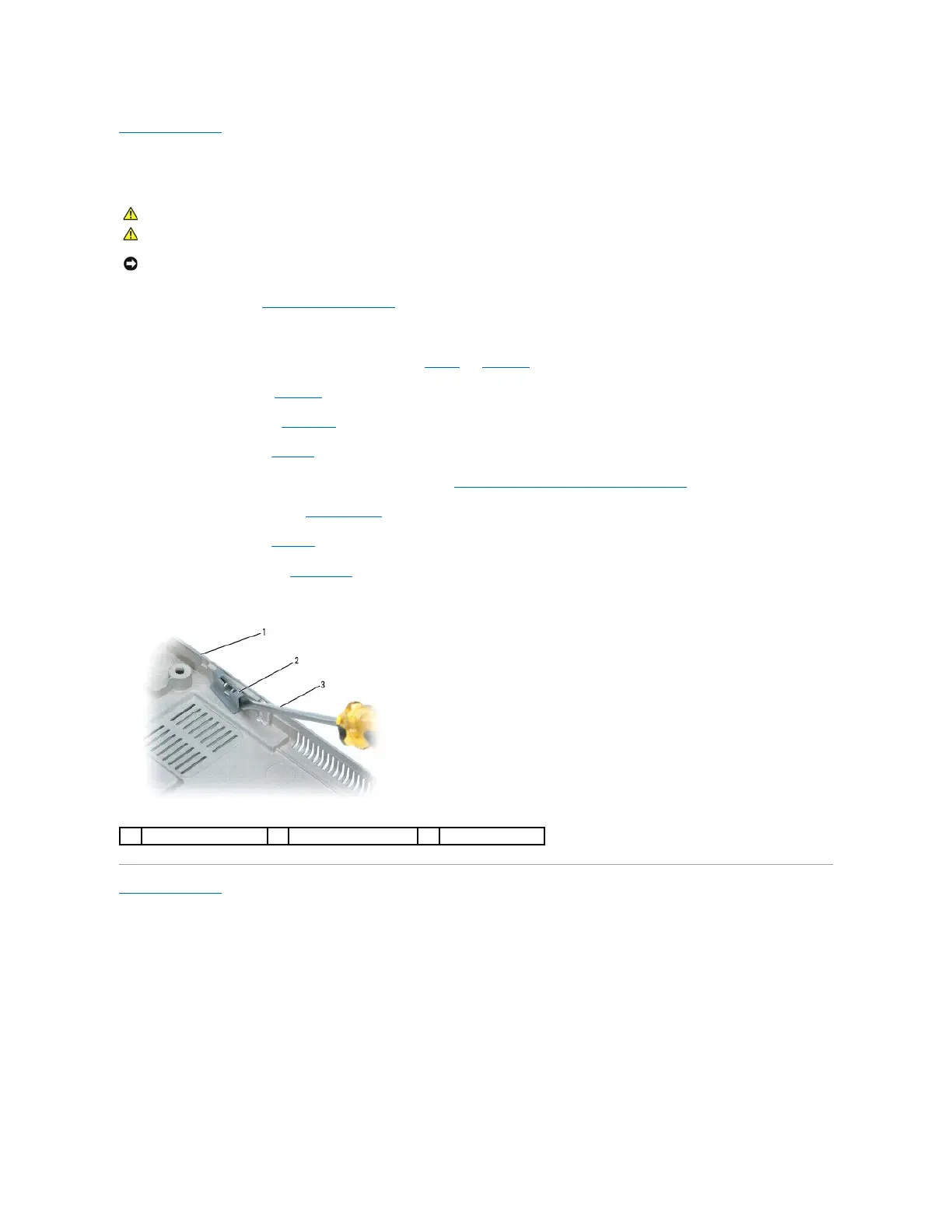 3. Remove any installed memory modules or Mini PCI cards (see Memory and Mini-Cards).