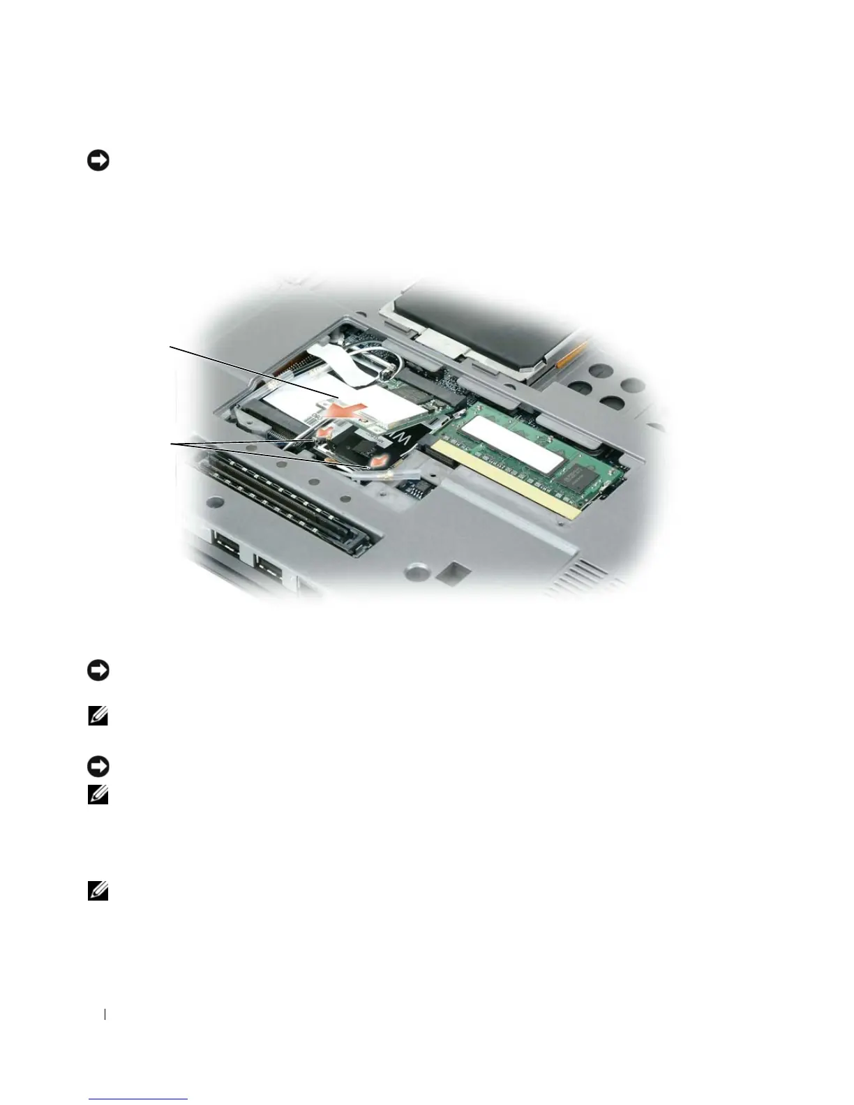 NOTICE: To avoid damaging the WLAN card, never place cables on top of or under the card.