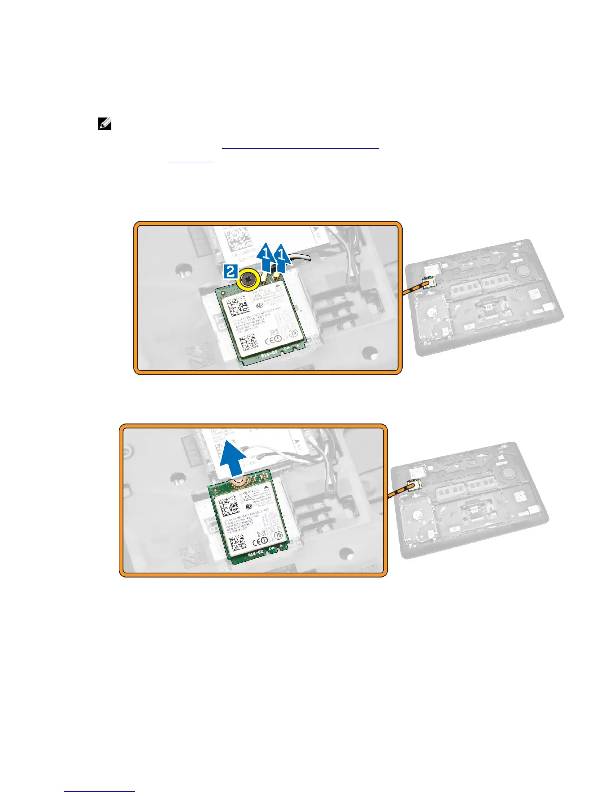 a. Disconnect the WLAN cables from their connectors on the WLAN card [1].