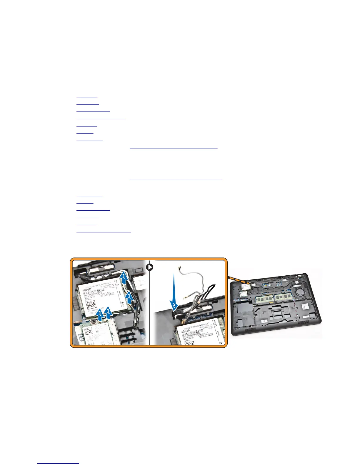 3. Disconnect the WLAN and WWAN cables from their connectors [1] and release the cables through