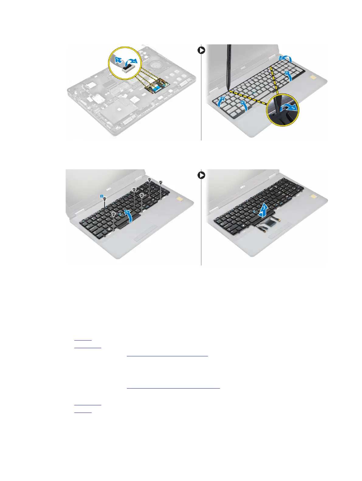 b. Lift the keyboard and slide it to remove it from computer [2, 3].