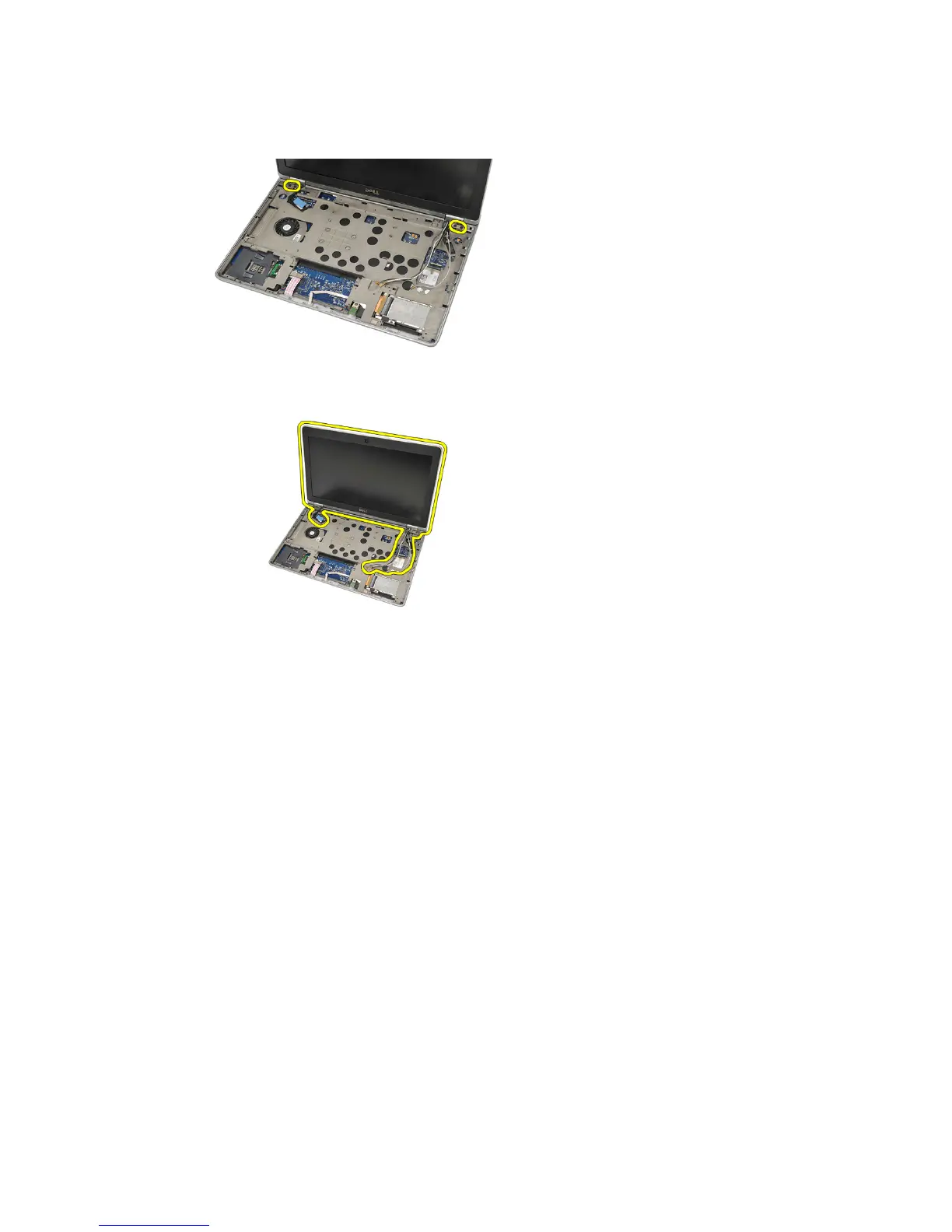 removing the last screw from the hinges. This is to avoid the display panel from