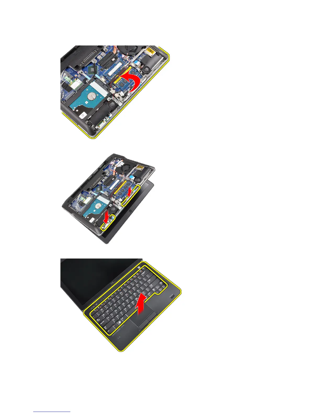 8. Press downward on the palmrest from the base of the computer.