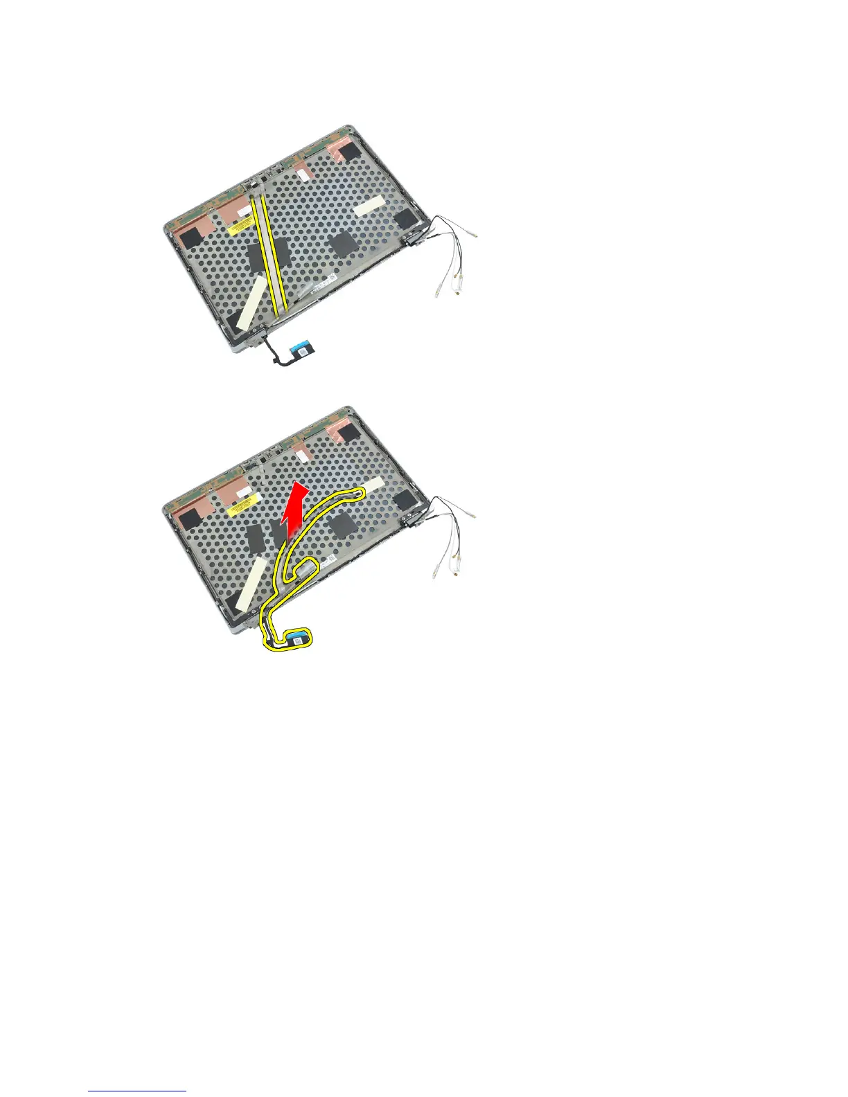4. Peel back the adhesives that secures the LVDS and camera cable to the display assembly.
