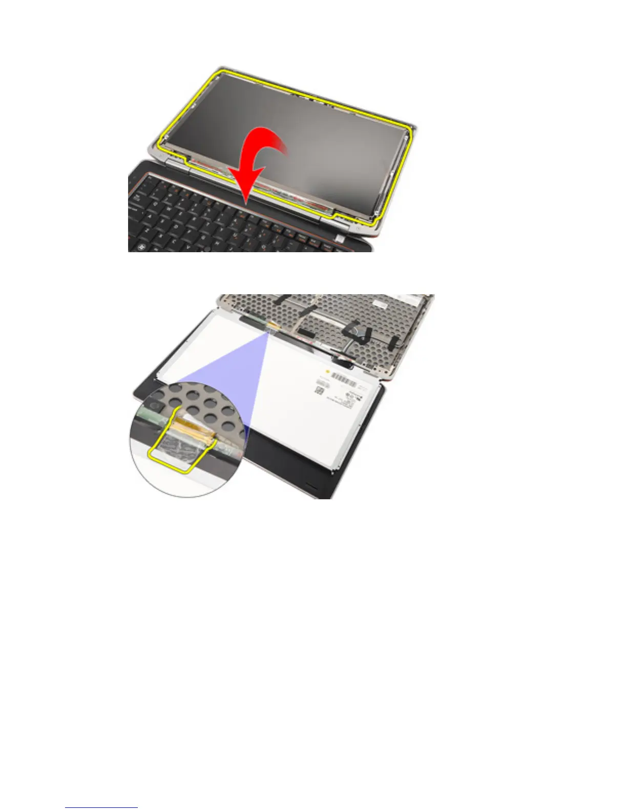 6. Disconnect the Low-Voltage Differential Signaling (LVDS) cable from the display