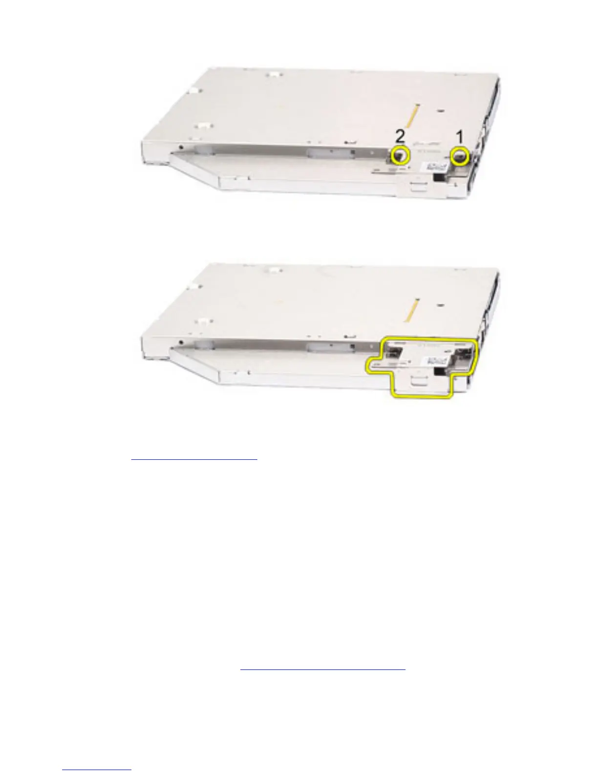 2. Tighten the screws to secure the drive latch bracket to the optical drive.