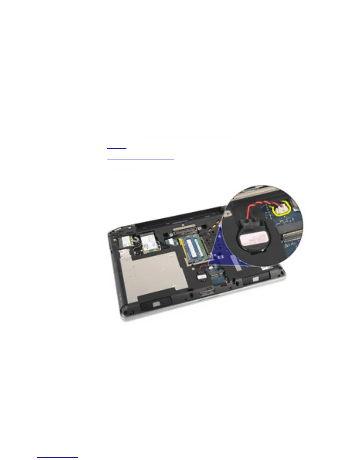 5. Disconnect the coin-cell battery cable from the system board.