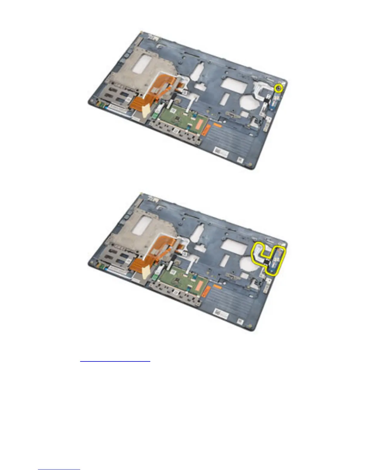 2. Replace and tighten the screw that secure the LED board to the palmrest.