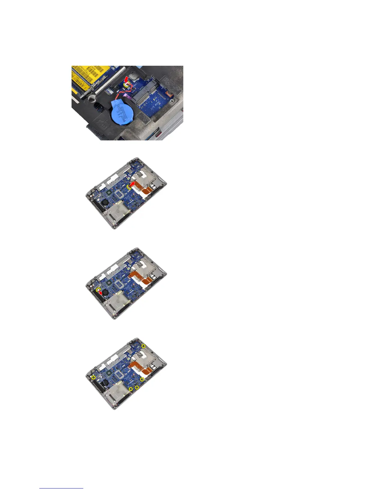 7. Lift the left edge of system board partially to a 45-degree angle.