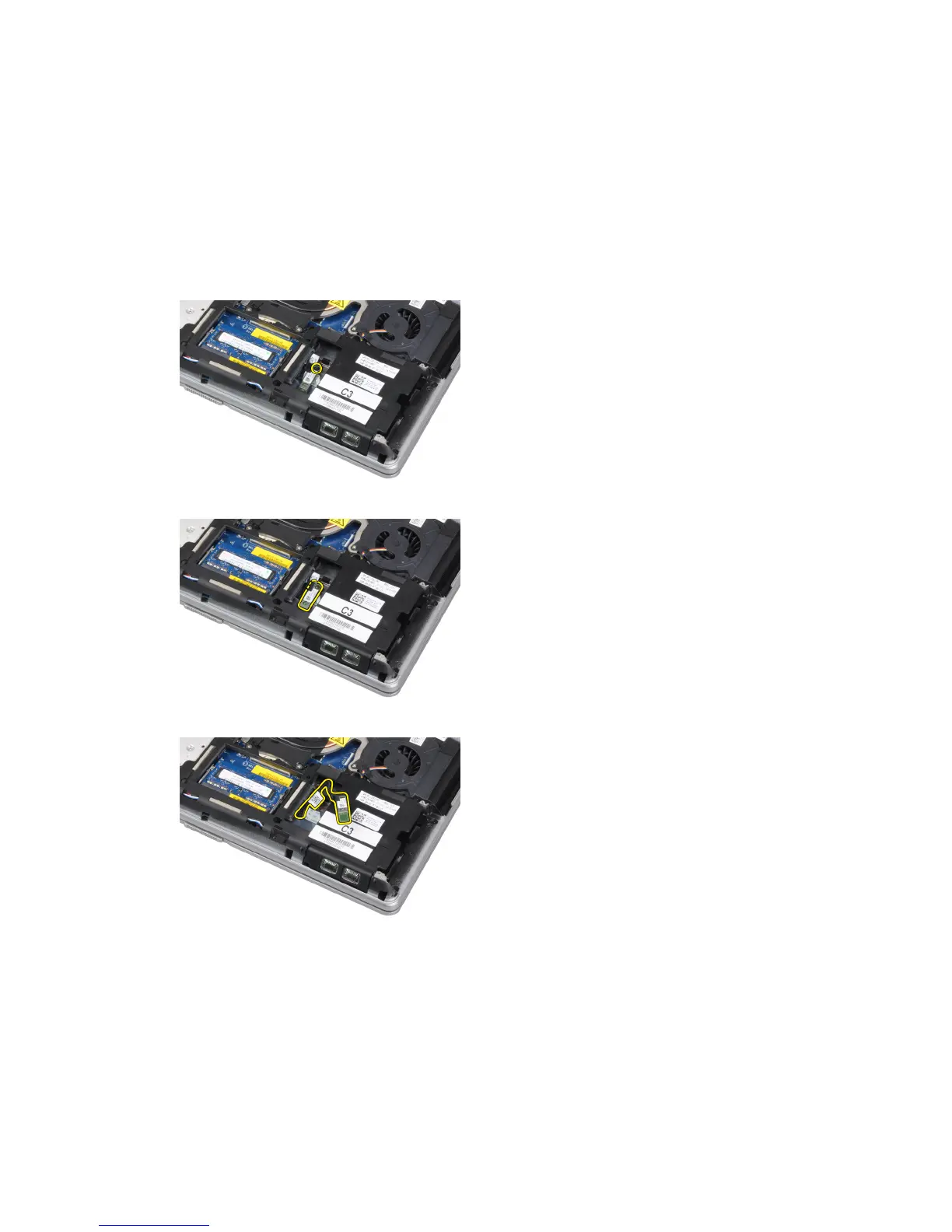 5. Disconnect the bluetooth cable from the system board and remove the card from the computer.