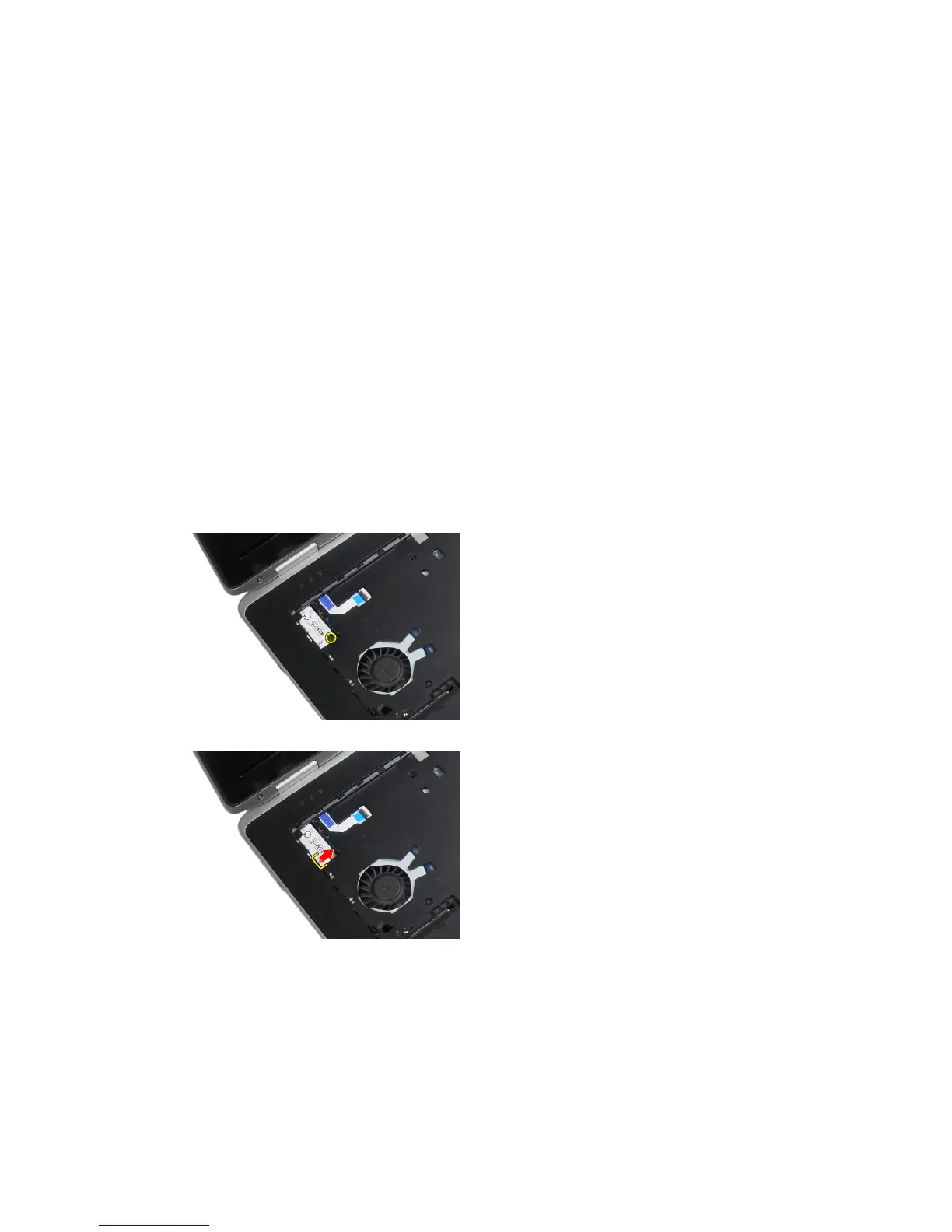 4. Pull out the tab from underneath the palmrest assembly.