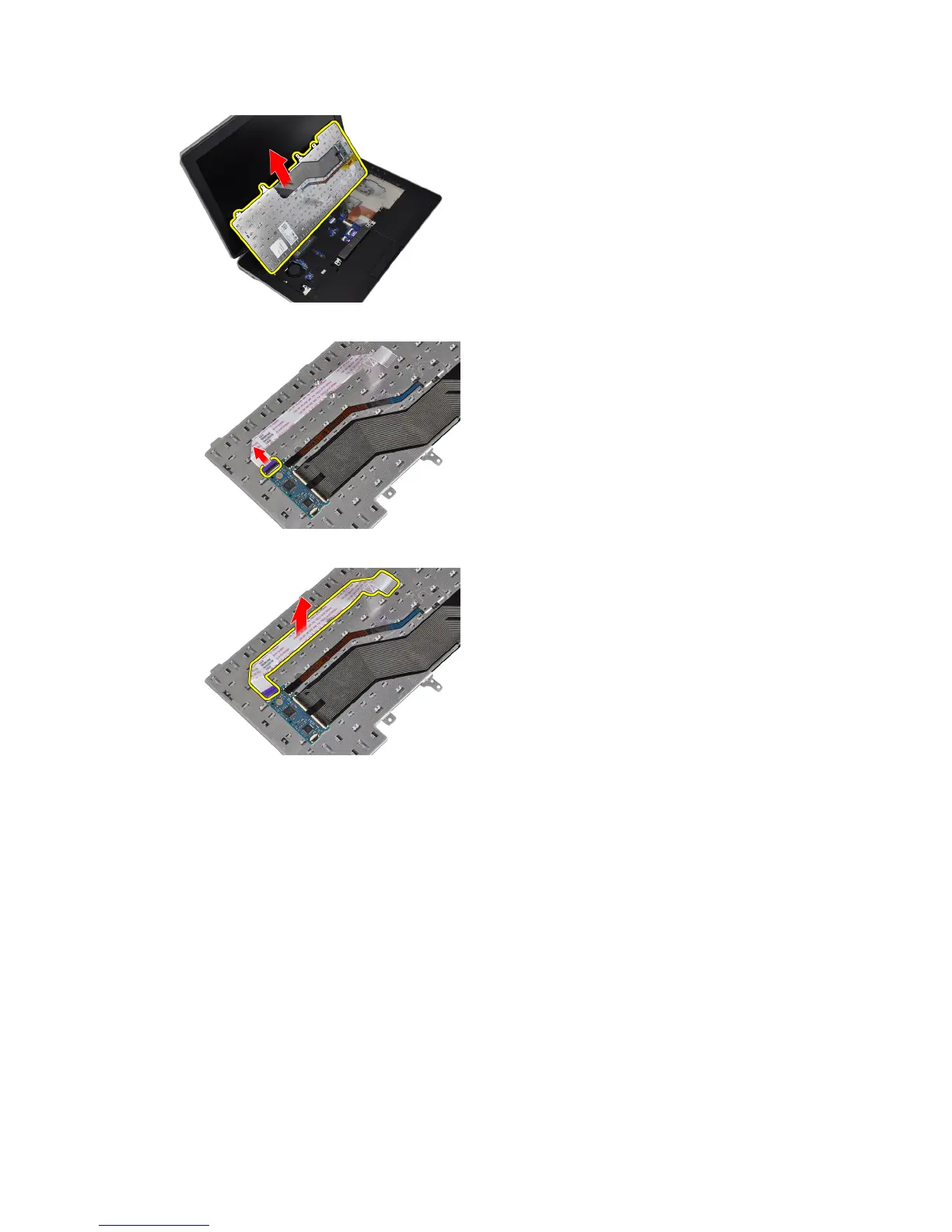 10. Remove the keyboard cable from the keyboard.