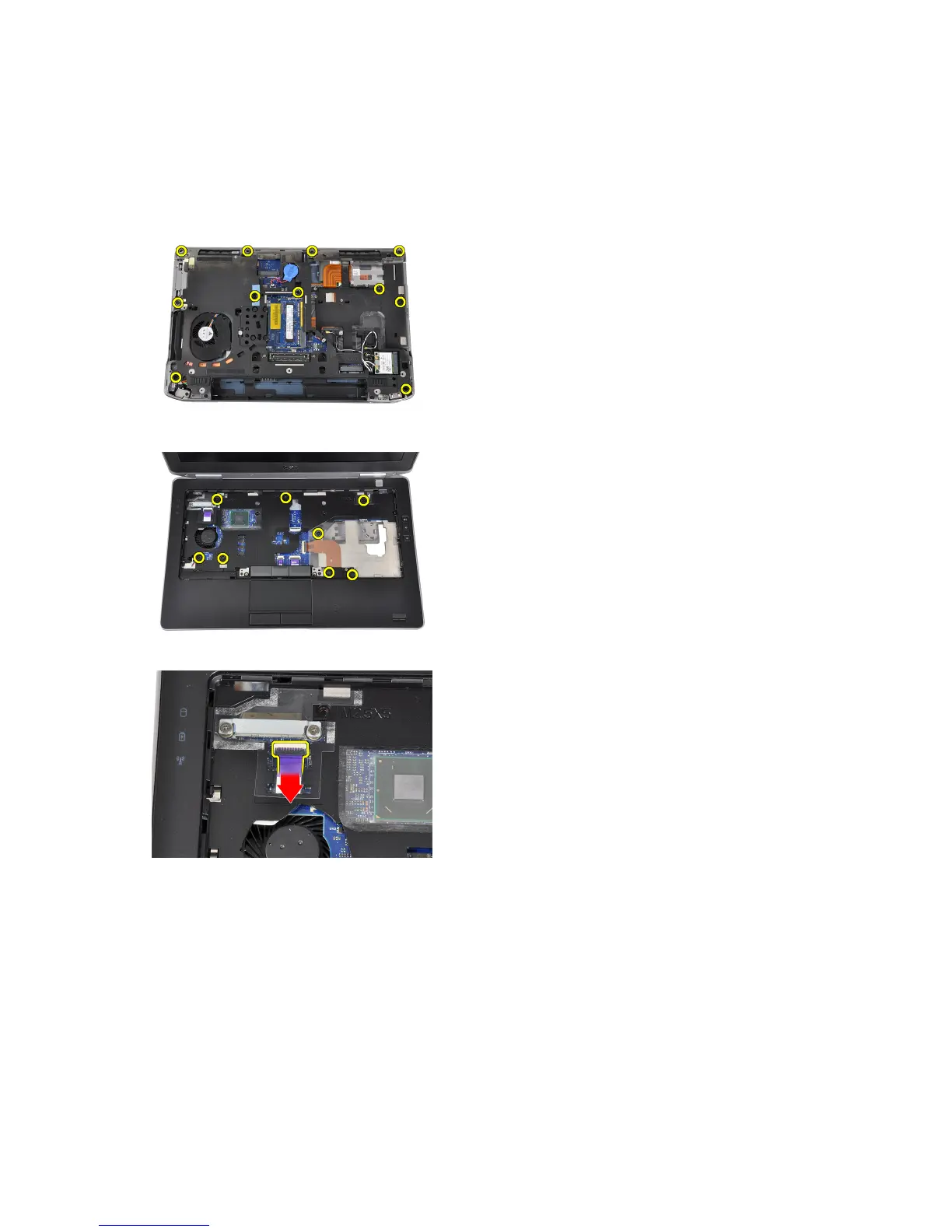 3. Remove the screws that secure the palmrest assembly to the base of the computer.