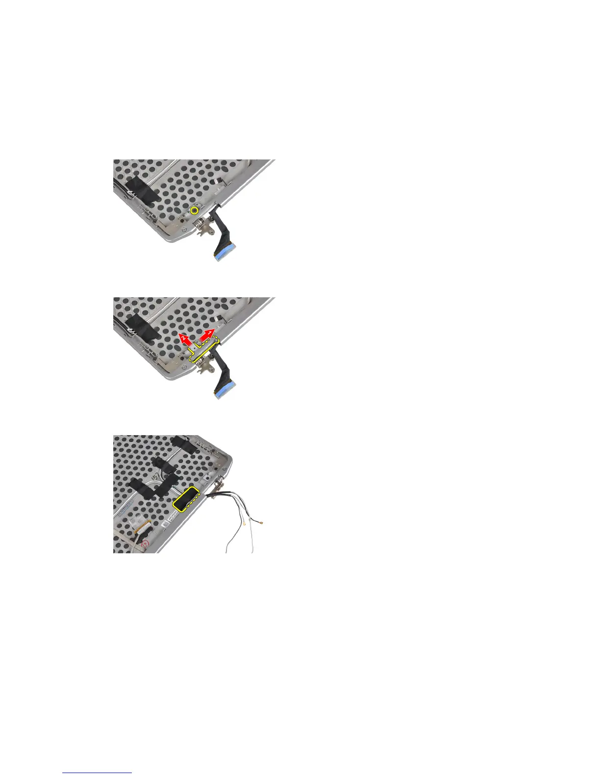 6. Remove the antenna cables from the opening in the right display-hinge wall.