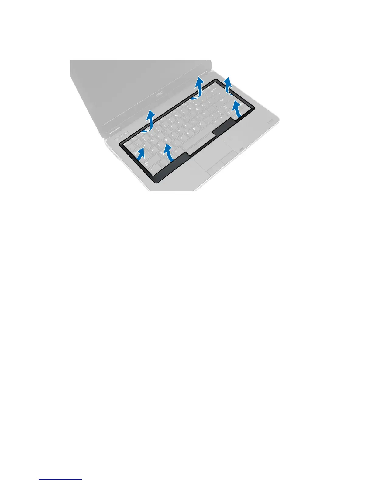3. Using a plastic scribe, pry the keyboard trim to release it from the computer. Lift it up to remove the keyboard trim