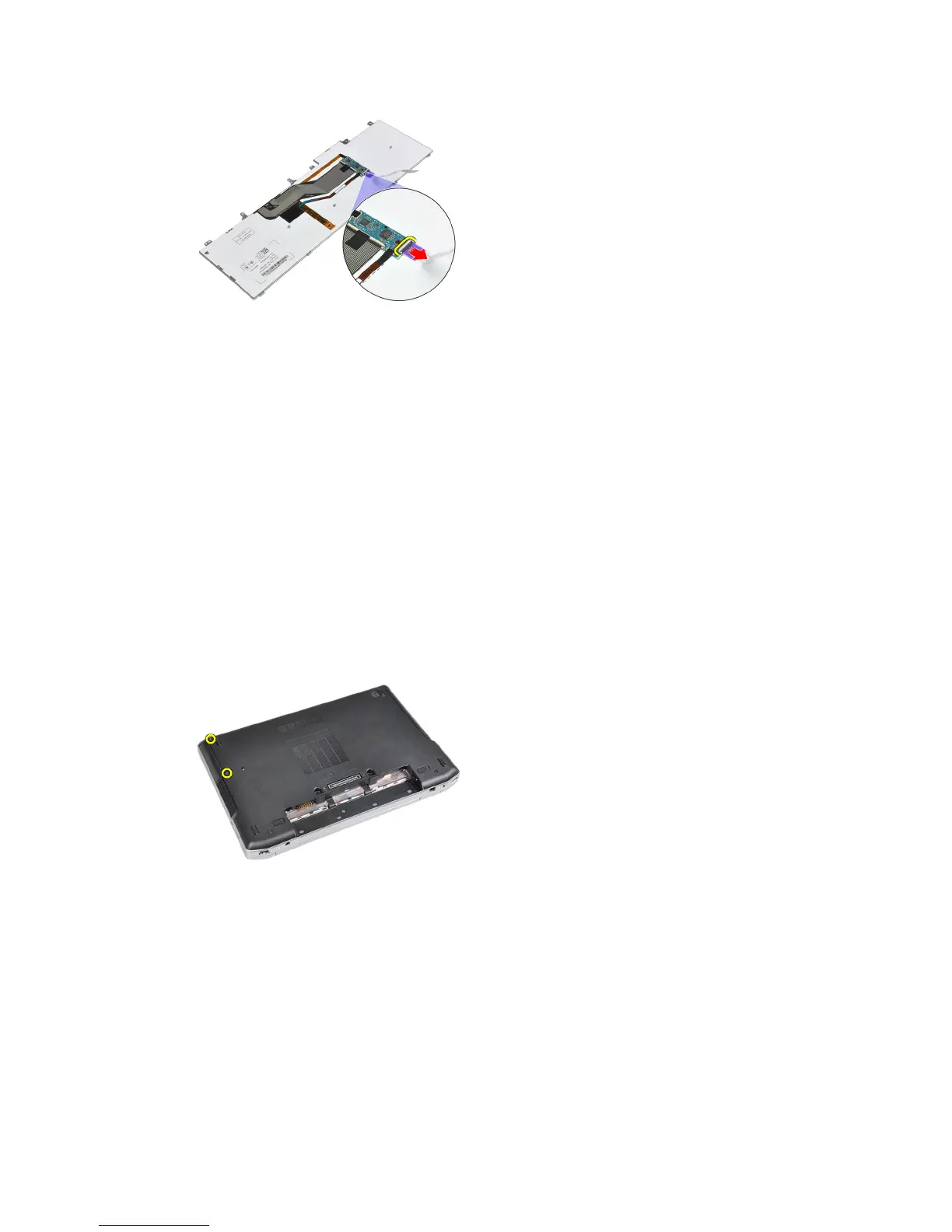 1. Connect the keyboard cable and secure it to the keyboard using the tape.