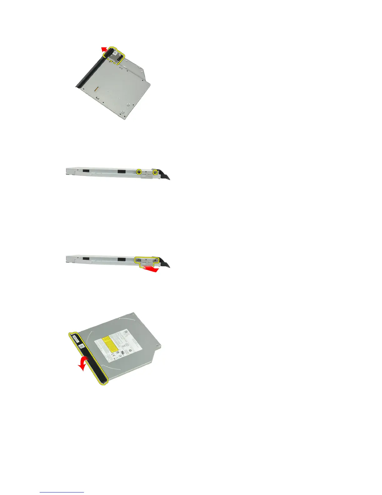 7. Remove the screws that secure the optical-drive latch bracket to the optical-drive assembly