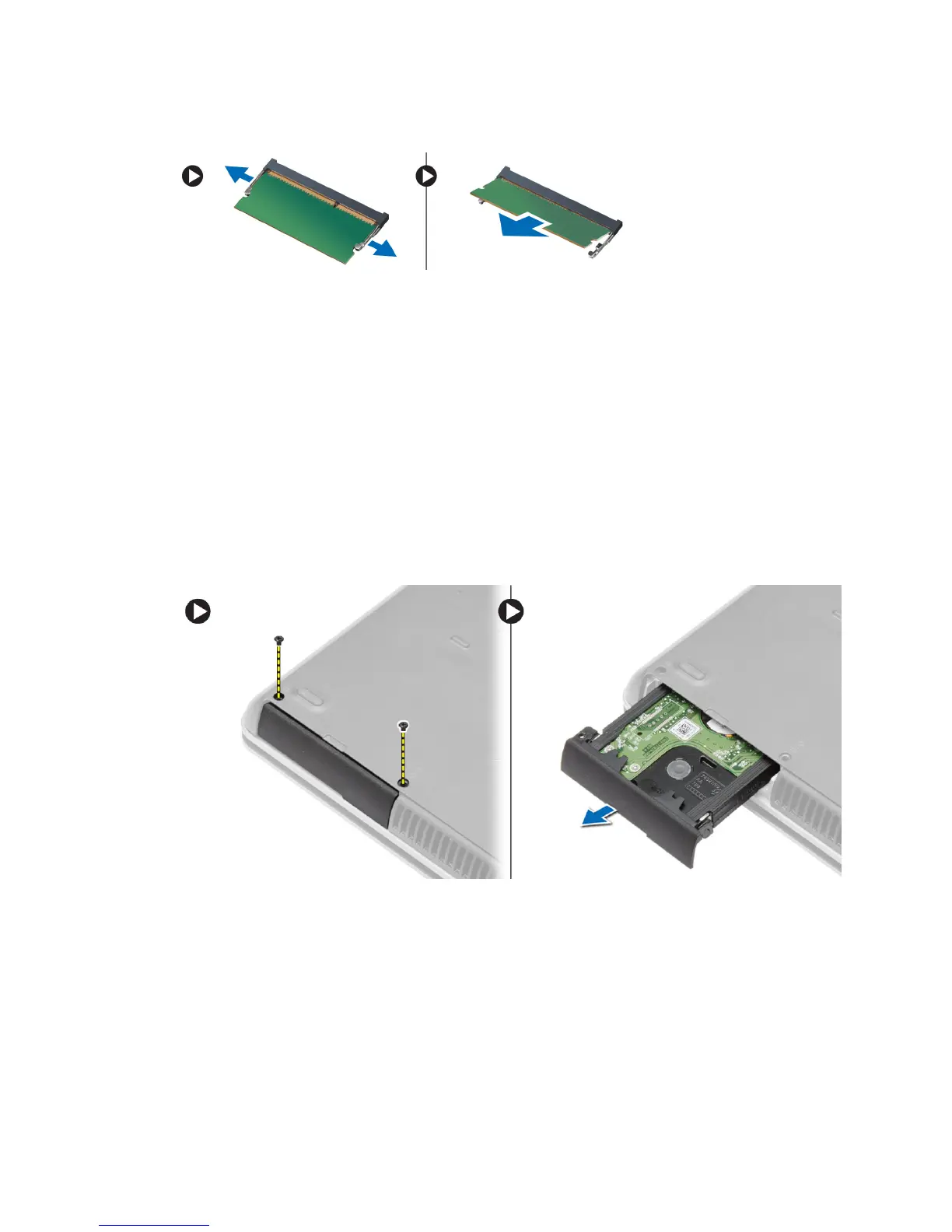 3. Pry the securing clips away from the memory module until it pops-up and remove the memory module from its