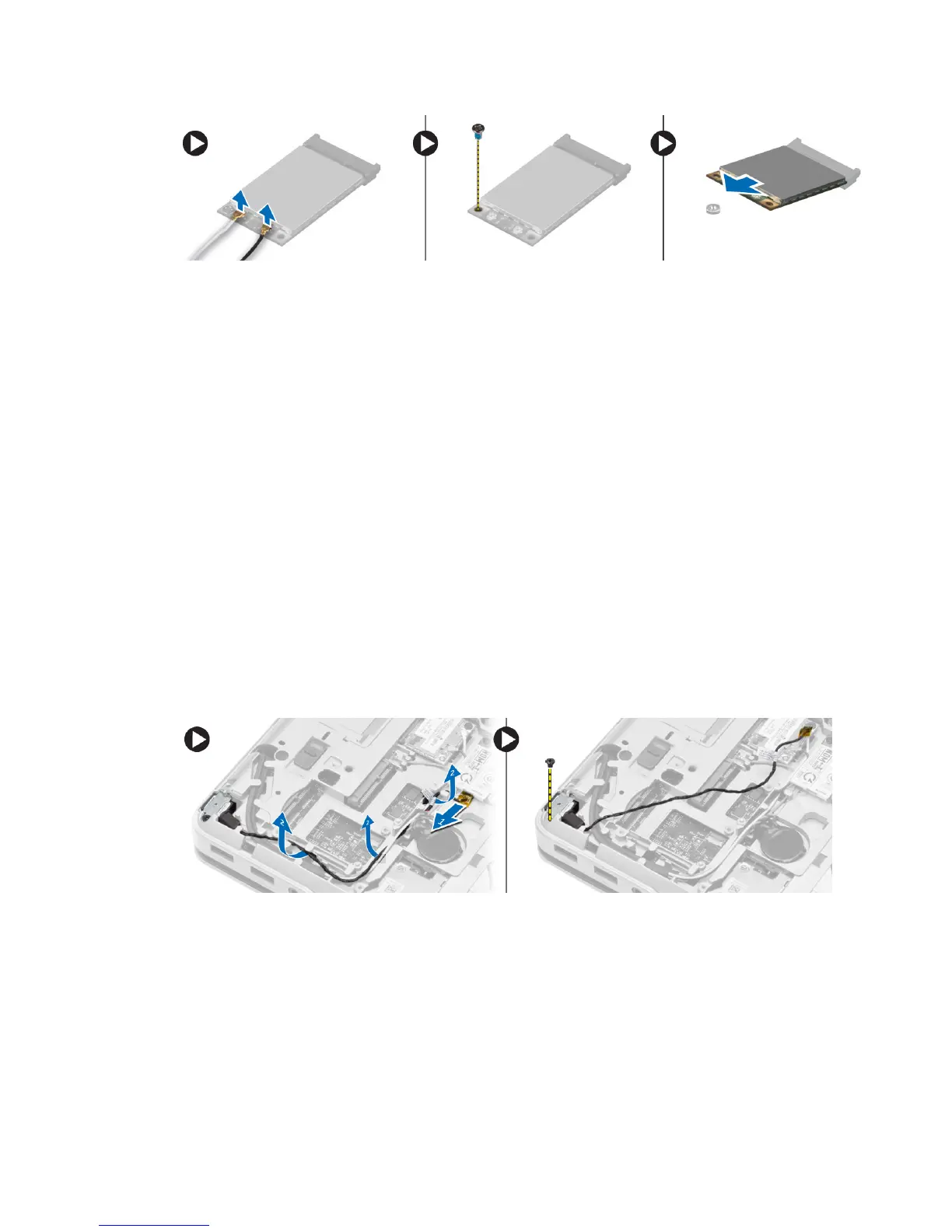 3. Connect the antenna cables to their connectors on the WWAN card.