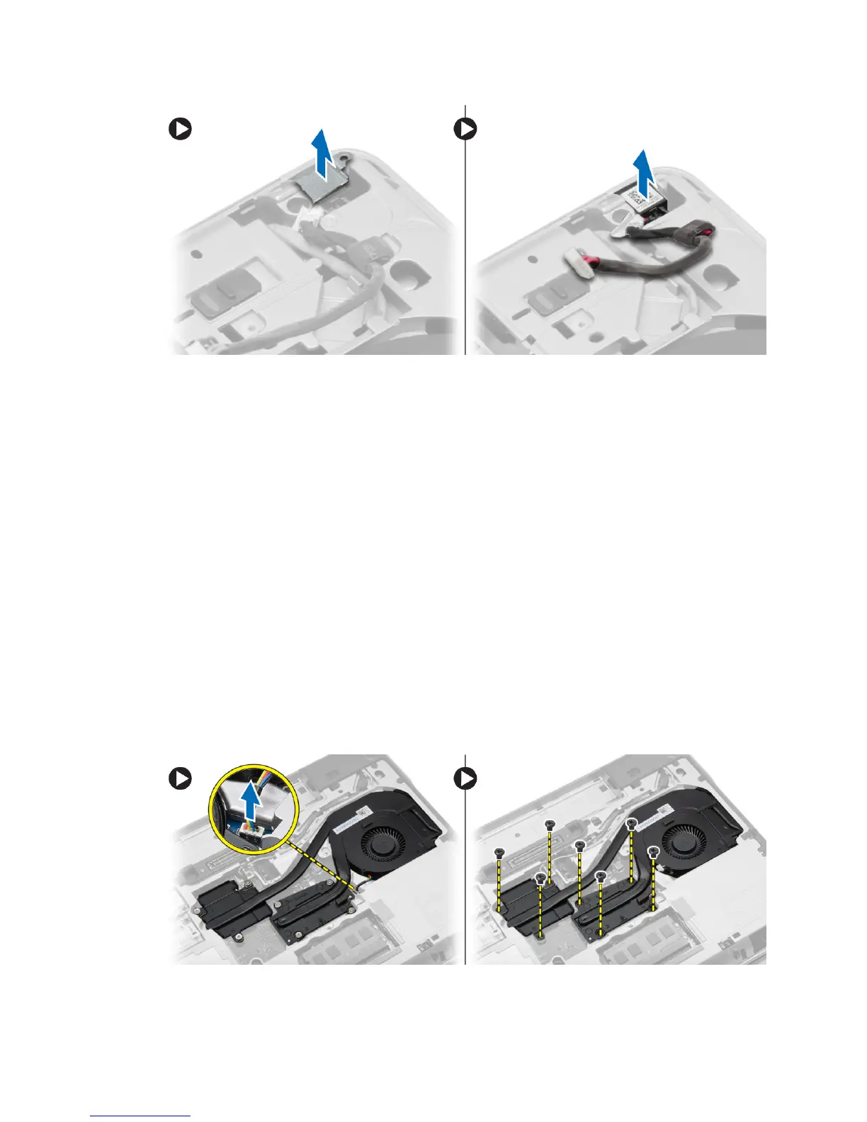 3. Disconnect the fan cable and remove the screws that secure the heat-sink assembly to the system board.