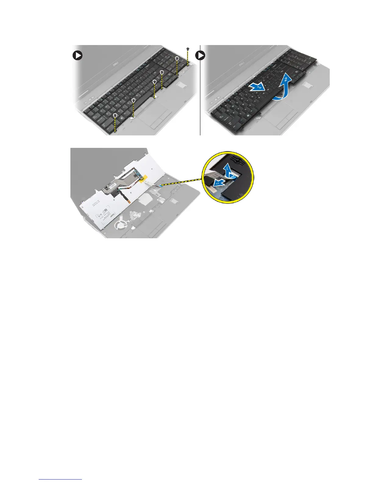 3. Tighten the screws to secure the keyboard to the palmrest assembly.