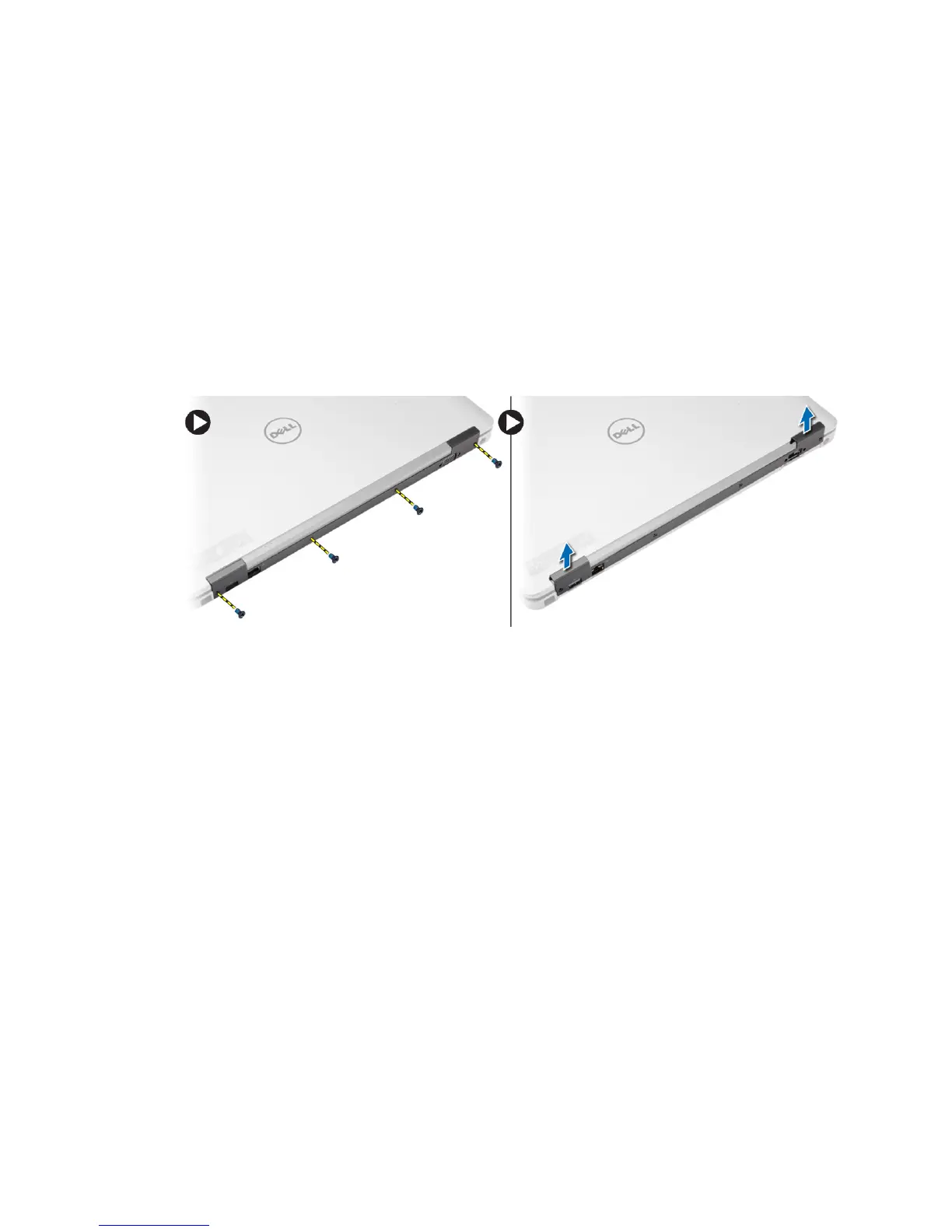 3. Remove the screws that secure the display-hinge cap to the computer and remove the display-hinge cap from the