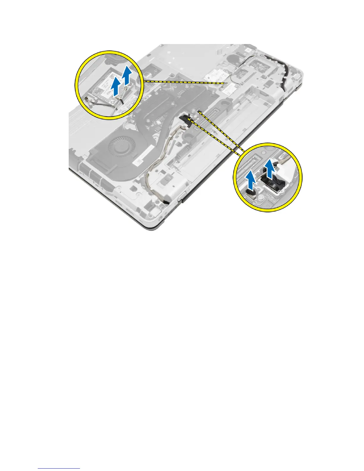 4. Disconnect the LVDS cable and release the LVDS cable and camera cable from the routing channel. Remove them