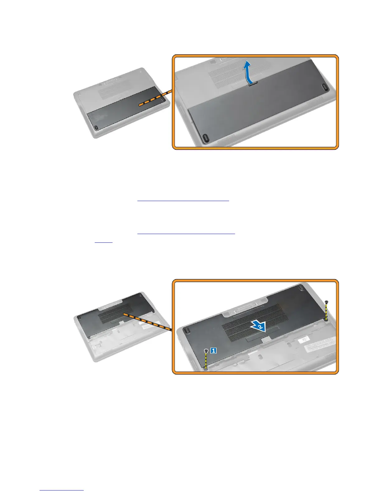 a. Remove the screws that secure the base cover to the computer [1].