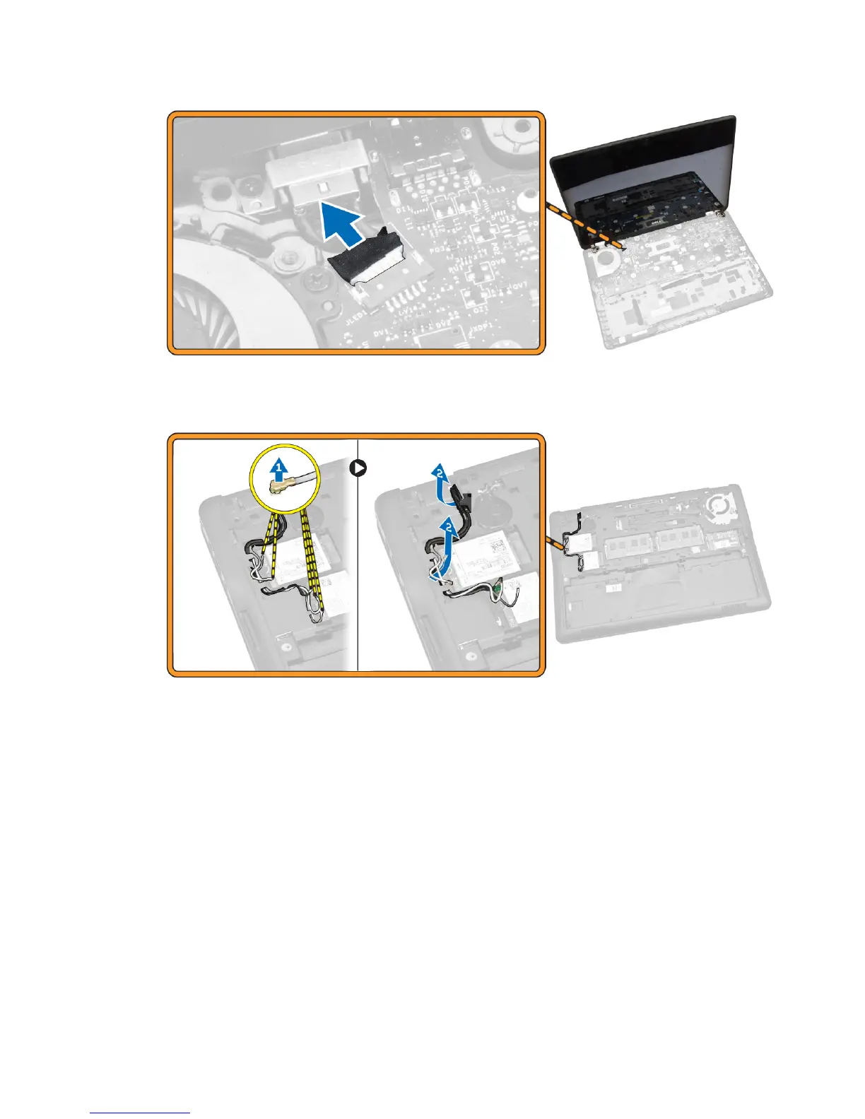 a. Disconnect the WWAN and WLAN cable from the computer [1].