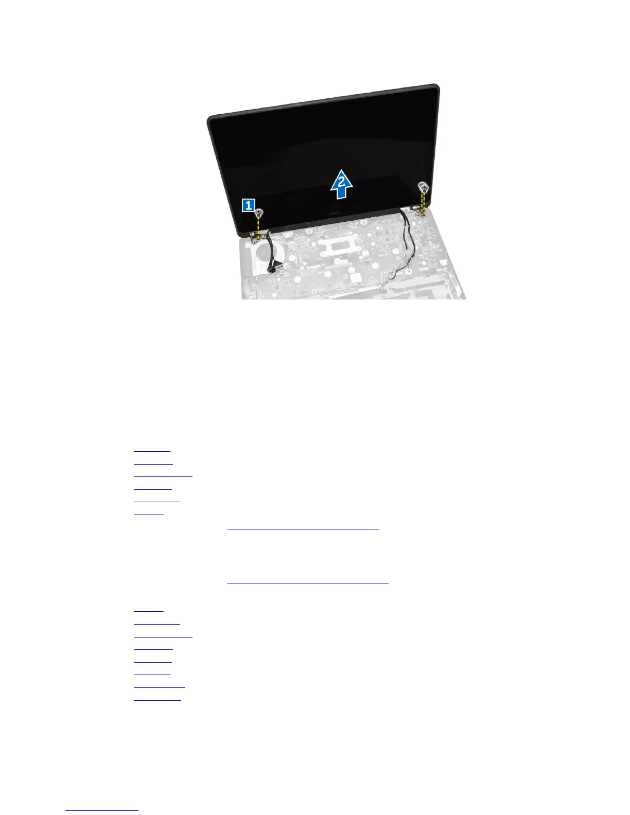 1. Insert the display and wireless antenna cables through the holes on the base chassis and connect