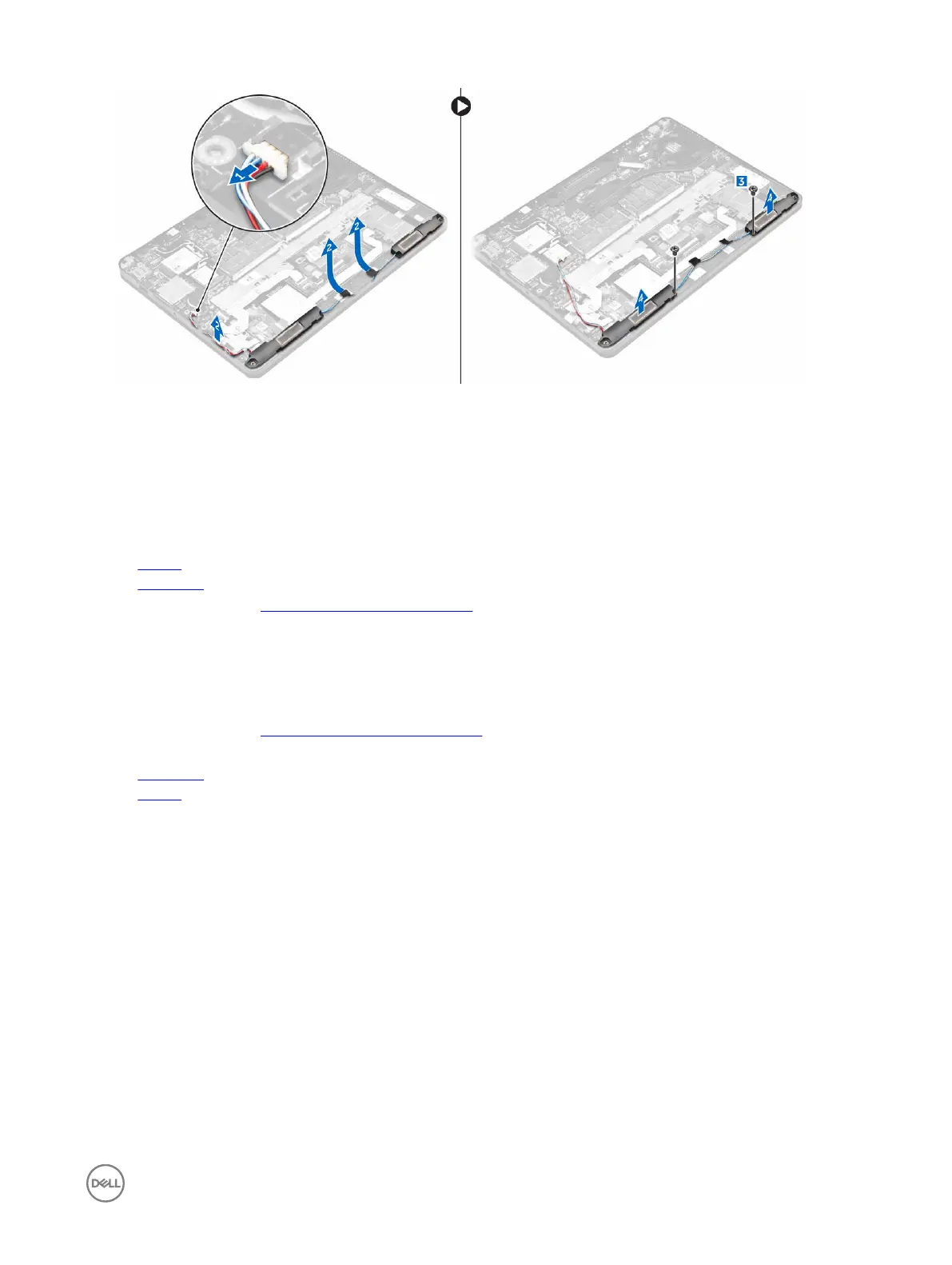 3. Route the speaker cable through the retention clips on the touchpad buttons and the computer.