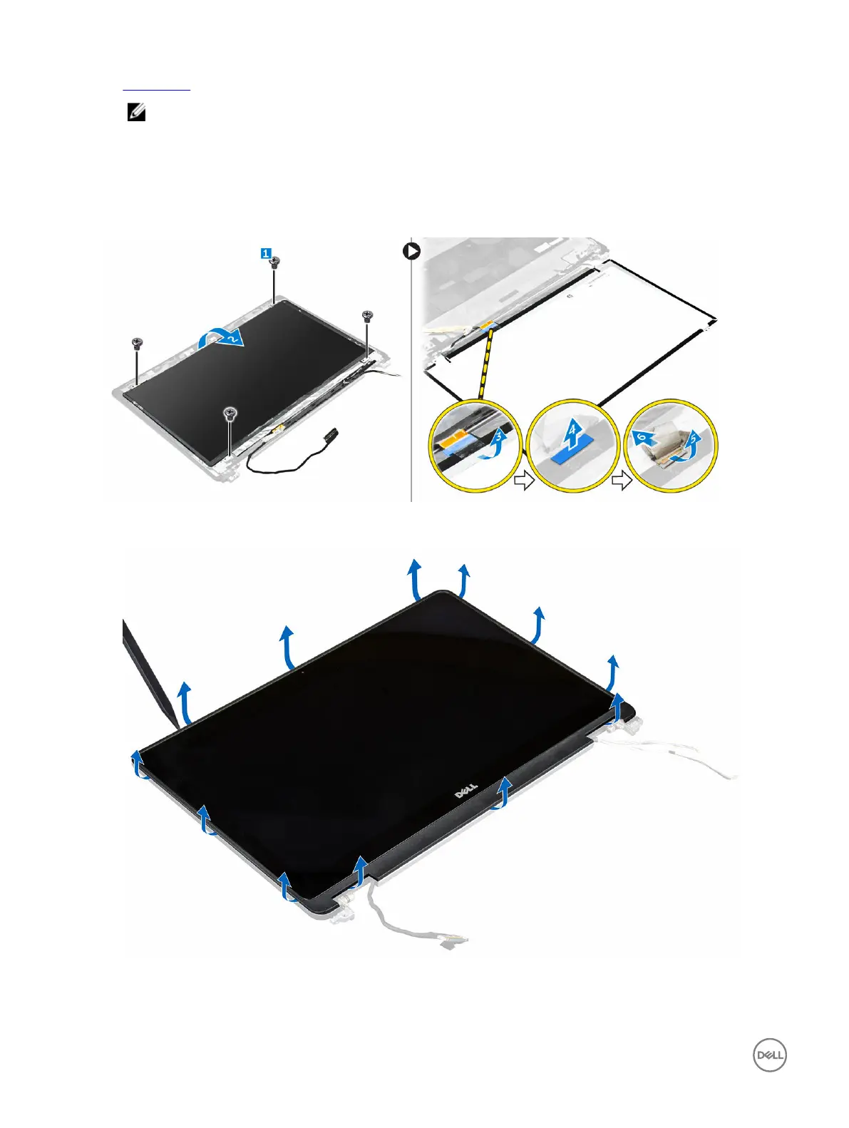 a. Remove the screws that secure the display panel to the display assembly [1].