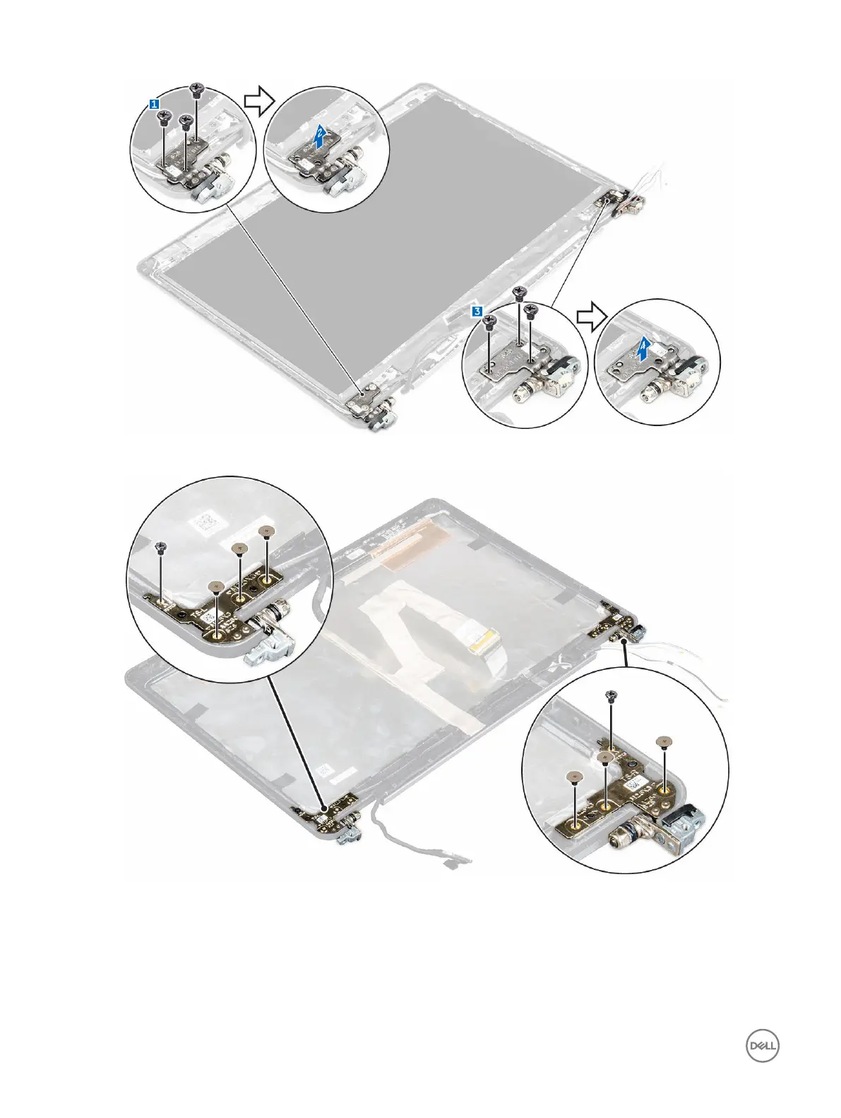 2. Tighten the screws to secure the display hinge to the display assembly.