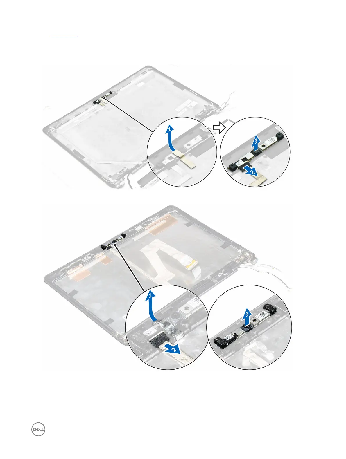 3. Peel the adhesive that secures the camera to the display assembly [1].