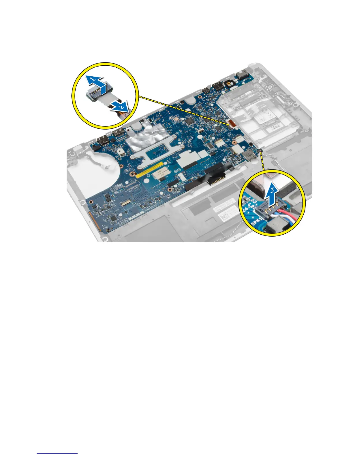 c) Disconnect the speaker cable from system board [3].