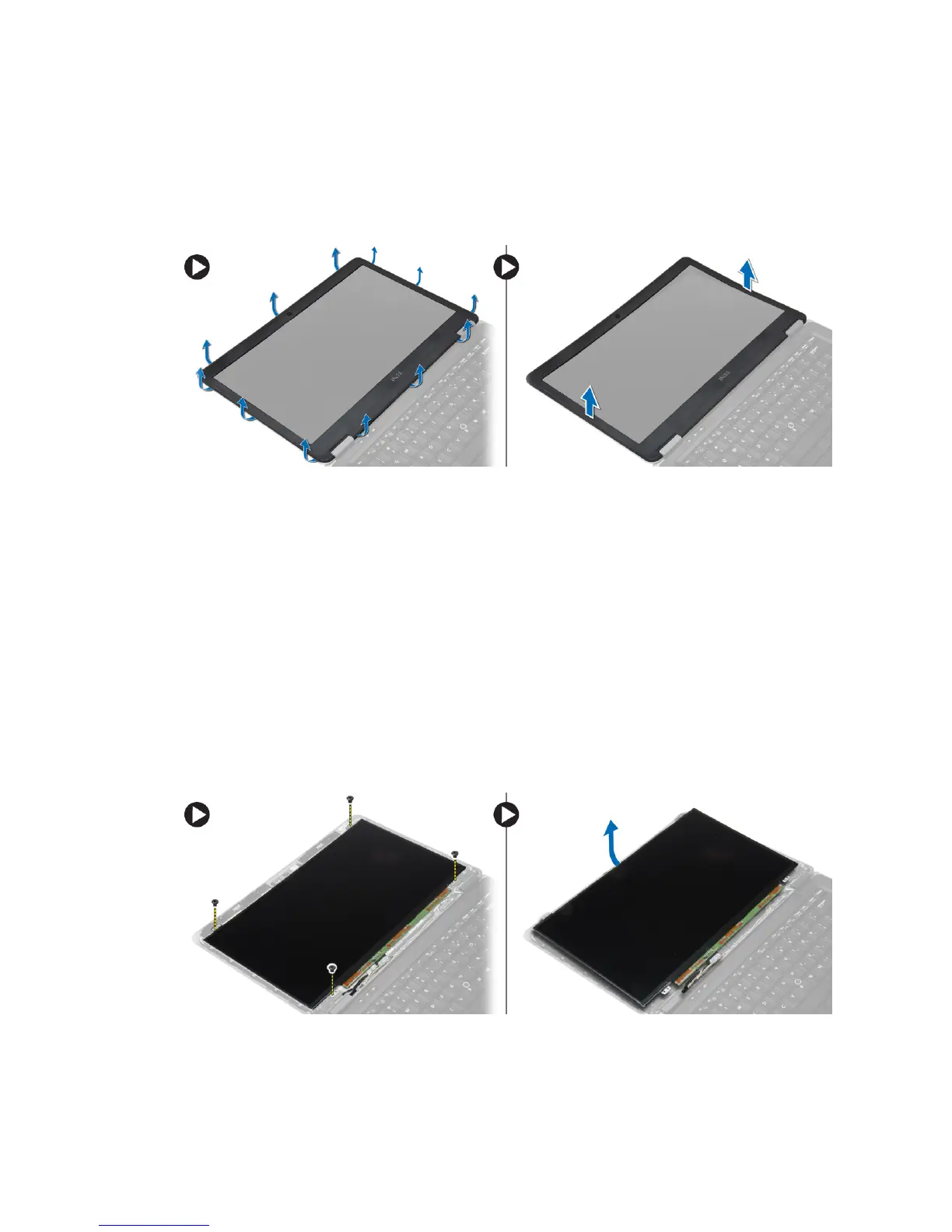 3. Pry the edges of the display bezel. Remove the display bezel from the display assembly.