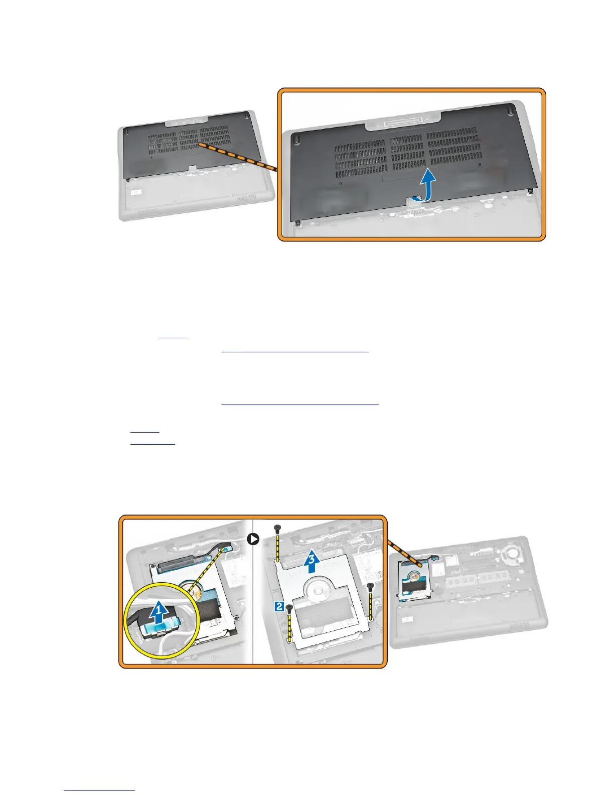 c. Remove the hard-drive bracket to release the hard drive [3].